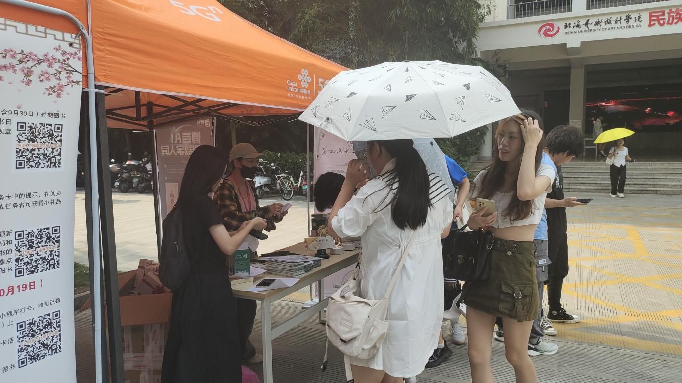 炎炎烈日下,同学们积极参与,兴趣浓厚,工作人员热心回答同学们咨询的问题。
