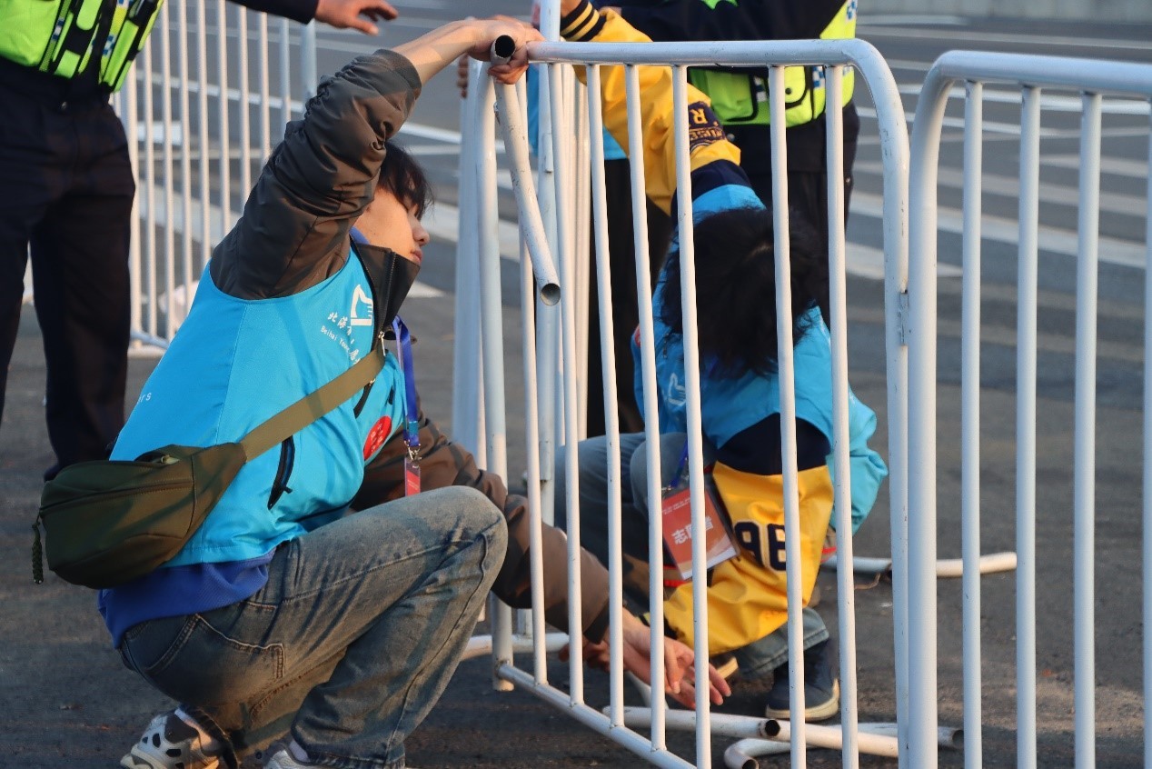 交通管制协助组的志愿者们协助交警封控赛场,指挥车辆进出,有效保障了赛事期间道路交通的良好秩序,确保活动安全进行。