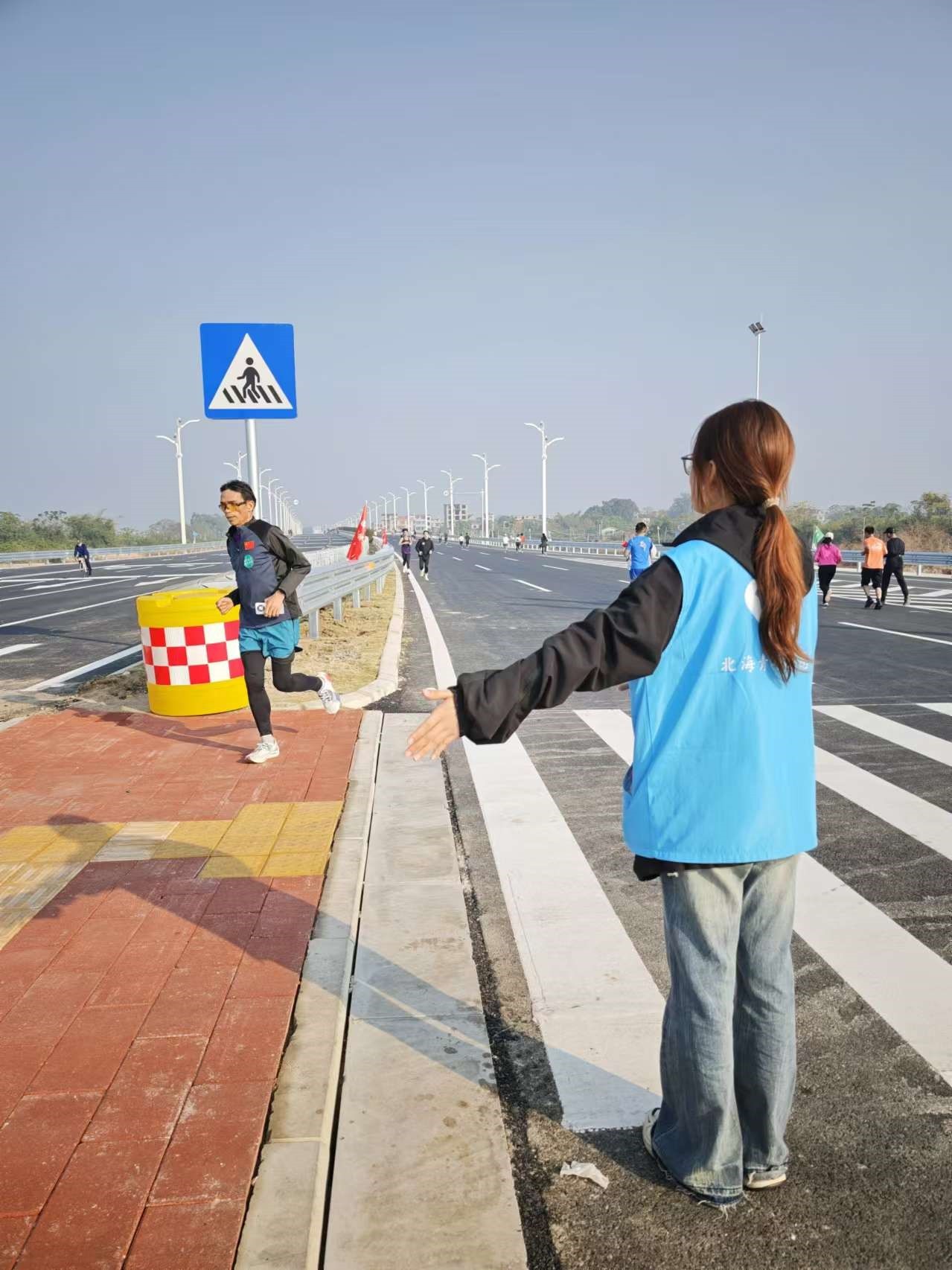 2025年1月1日凌晨六点二十分,沐浴着清晨的第一缕阳光,我校27名志愿者怀揣着满腔的热情乘车前往廉州湾大道,为即将举行的廉州湾大道(北海一合浦段)通车、廉州湾生态综合整治开工暨2025年“全民健身,健康北海”志愿服务工作做好准备。