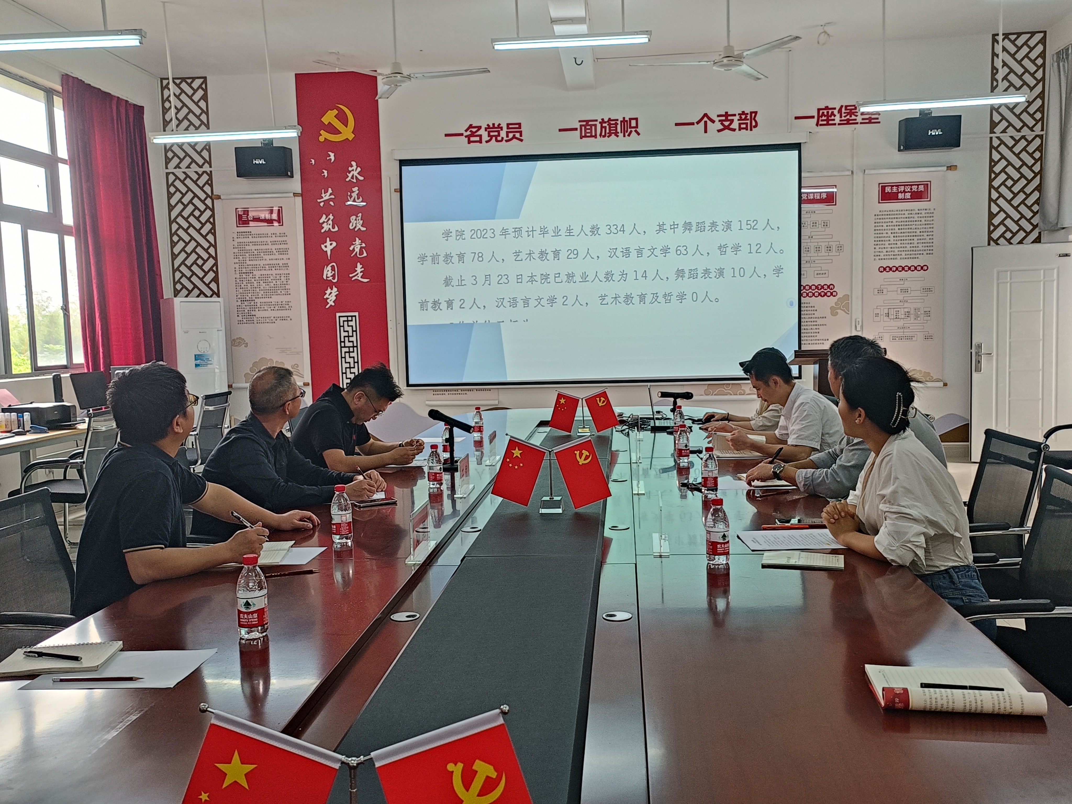 会上,党总支副书记邓欢代表学院作2023届毕业生就业情况汇报。邓副书记在汇报中指出,2023届毕业生就业形势严峻,困难程度远远超往届。面对存在的困难,为提高毕业生就业率和就业质量,学院采取了一系列有效措施。健全学生就业全院参与联动机制,优化就业手续办理流程,全方位服务学生就业;实行辅导员跟踪服务制度,针对毕业生“一人一档”、“一生一策”开展精准就业指导;对就业困难学生实行一对一帮扶;积极引导和鼓励毕业生面向基层就业和自主创业。另外,学院领导班子积极开展访企拓岗,通过到北海、北京实践基地深入走访和交流,到往届毕业生就业单位探访等,拓宽就业市场和渠道,有效推进学生就业工作。
