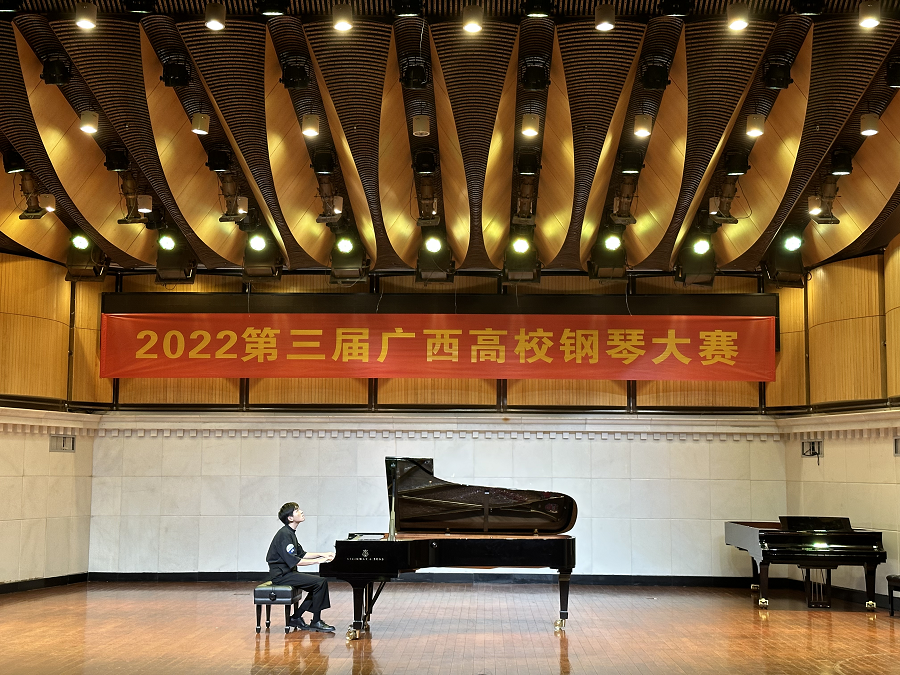 2022年10月28日-30日,第三届广西高校钢琴大赛在广西艺术学院举行。我校人文教育学院学生朱永之、李洁、刘菁菁、梅紫怡代表学校参赛。