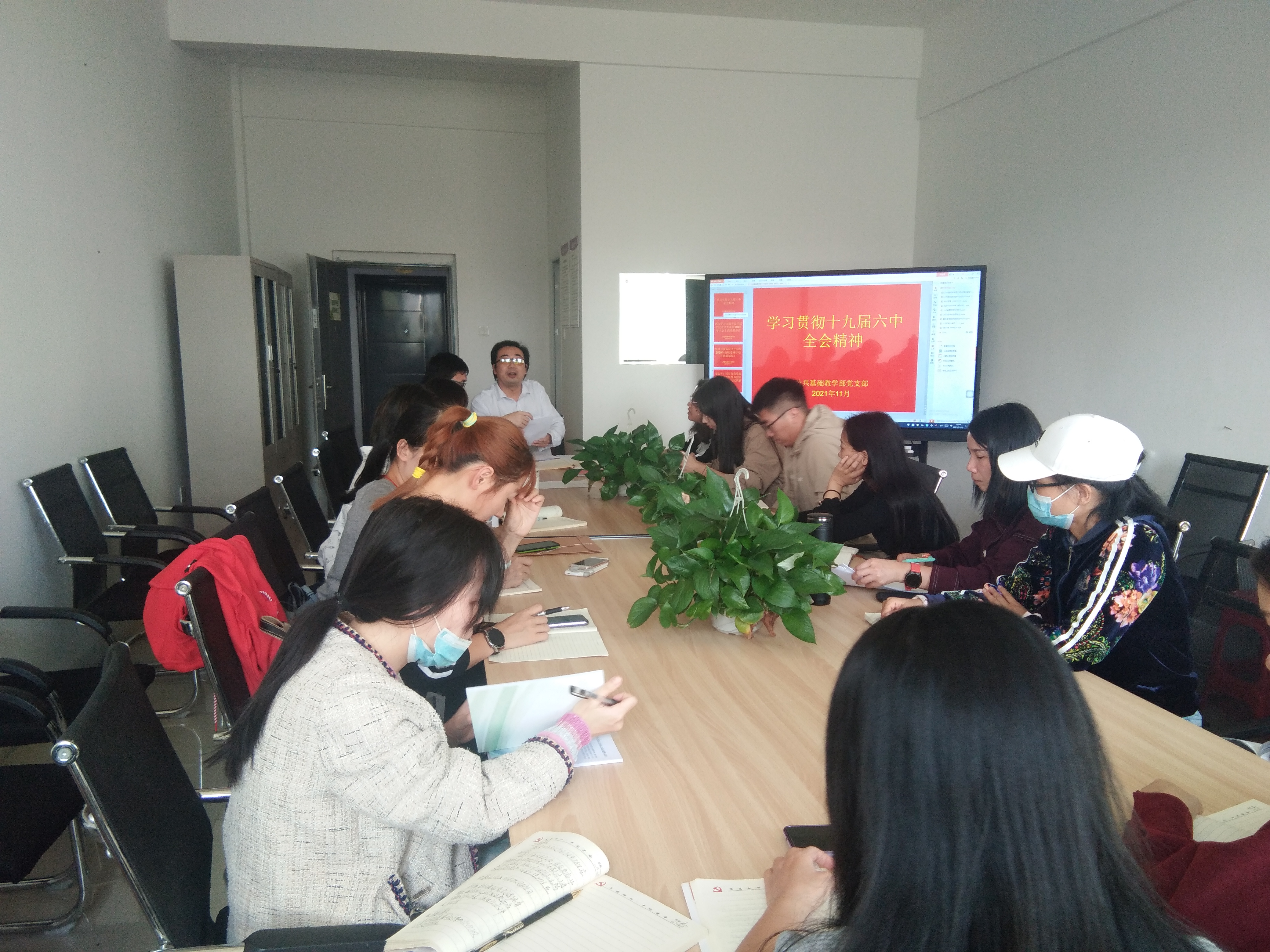 近日,党的十九届六中全会落下帷幕,2021年1112日,公共基础教学部党支部组织学习传达学习党的十九届六中全会精神。
