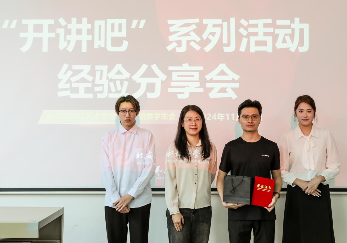 2024年11月23日,由北海艺术设计学院建筑与环境艺术学院分团委学生会学术部承办,宣传部和礼仪主持部协办的“开讲吧”系列的活动在公德楼112如期举行。莅临本次活动的嘉宾有建筑与环境艺术学院副院长张乐平、建筑与环境艺术学院教务办田鹏老师、建筑与环境艺术学院分团委副书记陈宣辰,以及学生代表们。