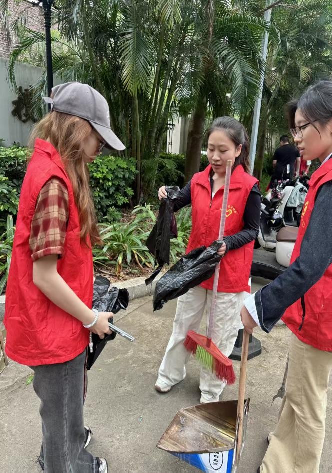 活动当天,参与人员准时抵达橄榄苑社区,在社区工作人员引导下明确分工、有序行动。分团委组织部成员与各班团支书们充分发挥先锋模范作用,全身心投入到社区清洁工作中。大家合理分组、分工协作,有的手持扫帚清扫路面落叶和散落垃圾,有的用抹布仔细擦拭社区宣传栏、健身器材、单元门等公共设施,还有的弯腰捡拾绿化带内的烟头、纸屑等杂物,认真清理墙角、楼道、楼梯转角等卫生死角,不放过任何一处脏乱区域,以饱满的热情和务实的行动,全力改善社区环境面貌,用汗水为社区增添洁净与美好。
