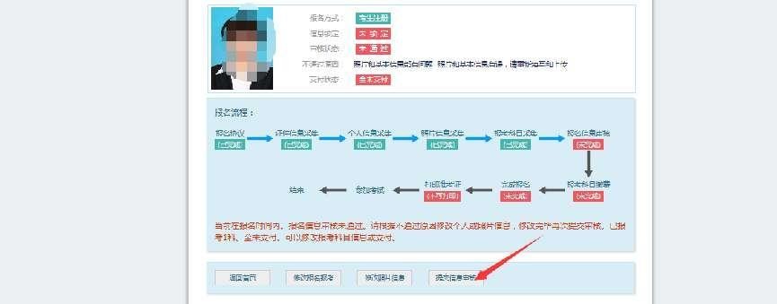 注意:若考点不需要信息审核,则考生可跳过上面的审核相关步骤,直接进行支付操作。
