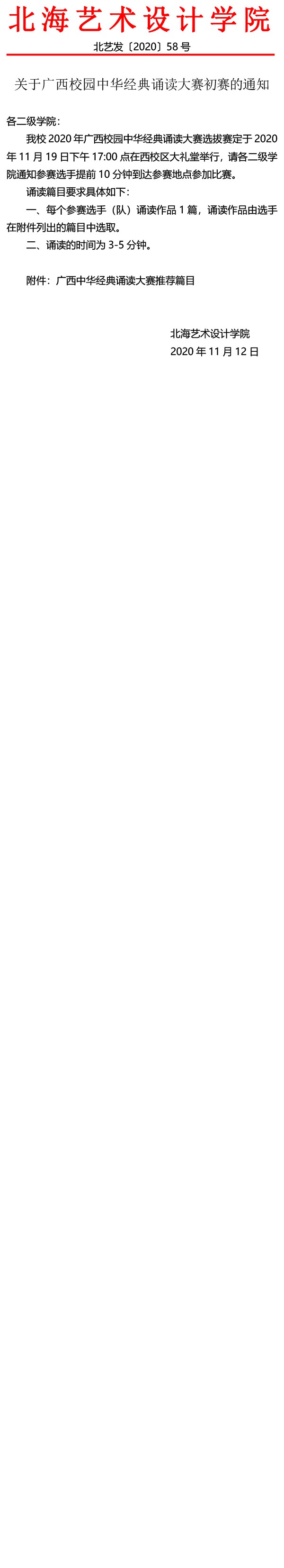 关于2020年广西校园中华经典诵读大赛初赛的通知