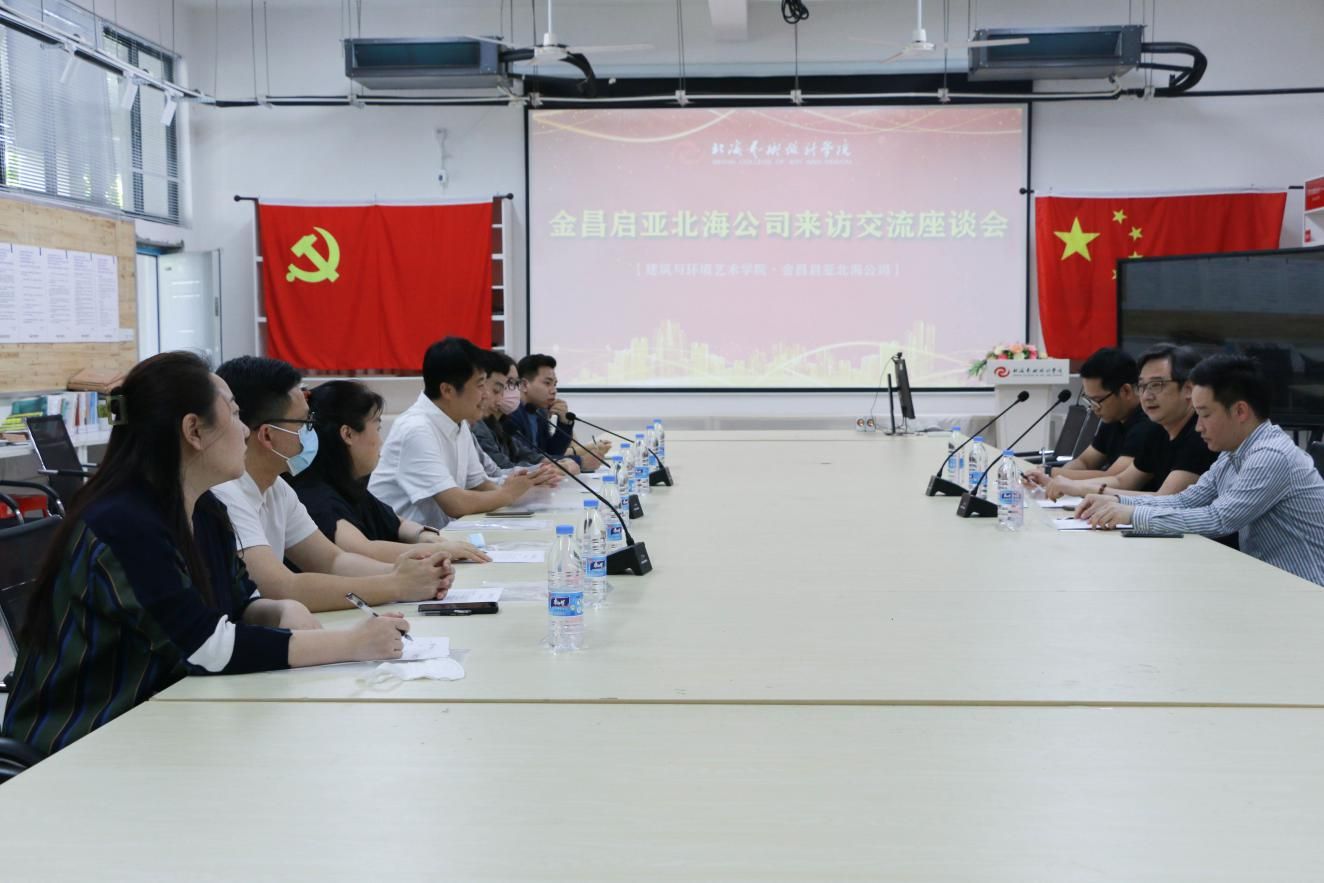 促进产教融合、实现校企合作双赢。4月9日,金昌启亚北海公司副总经理何建尔、策划经理林国斌、销售经理范明清一行3人莅临我校开展校企合作交流座谈会。会议于公德楼207会议室举行,建筑与环境艺术学院院长王照伟、综合办主任李东瑞、实验室主任李二君、环境设计教研室副主任石少平、分团委书记雷勇、实验室教师黄圣鑫、综合办秘书杨金玥、梁懿参加会议。