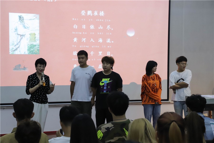 周游教授以边塞诗为例,讲述环境也是感情的一种表现,边塞诗人的爱国情怀值得赞颂,希望同学们尊重历史,将军魂、爱国之情融入心中,认真领悟诗魂,了解作品精神。以情发音。