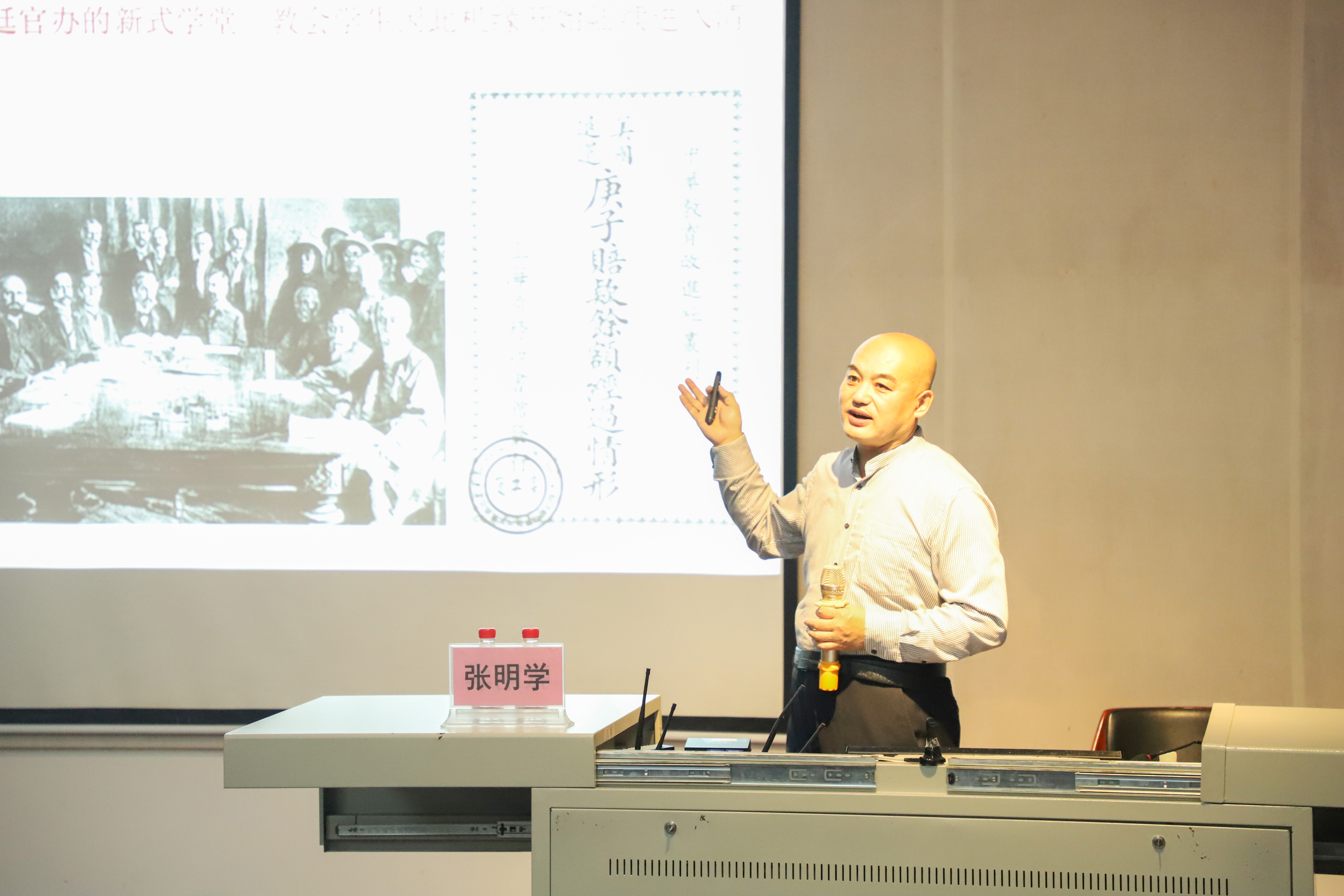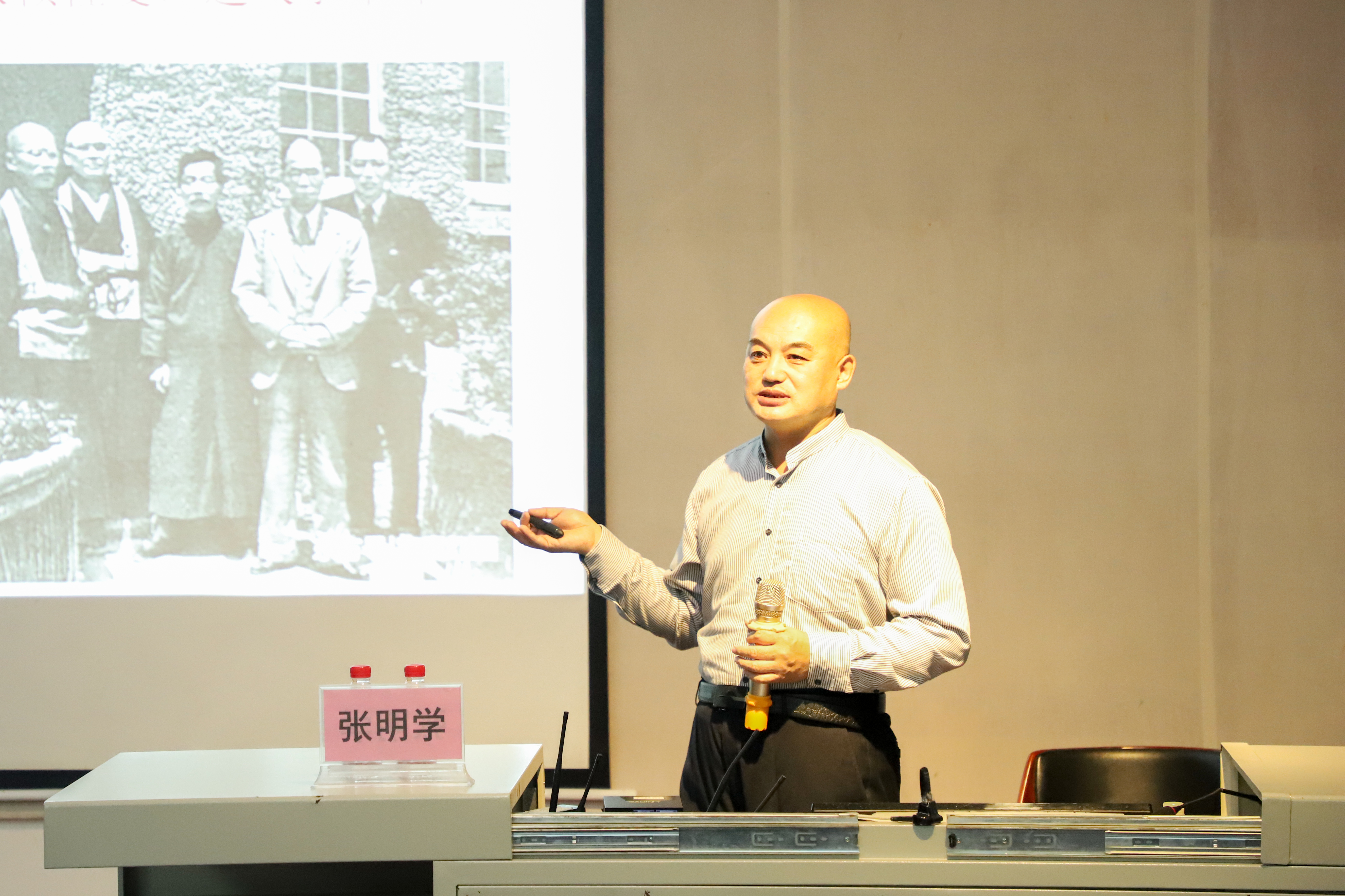 随后,张教授介绍了推动我国流行音乐发展的一批优秀音乐家,让大家欣赏了沈心工的《男儿第一志气高》、李叔同的《送别》和萧友梅的《踏歌》等音乐作品。由于他们的努力,开启了中国学堂普及音乐教育的新时代。