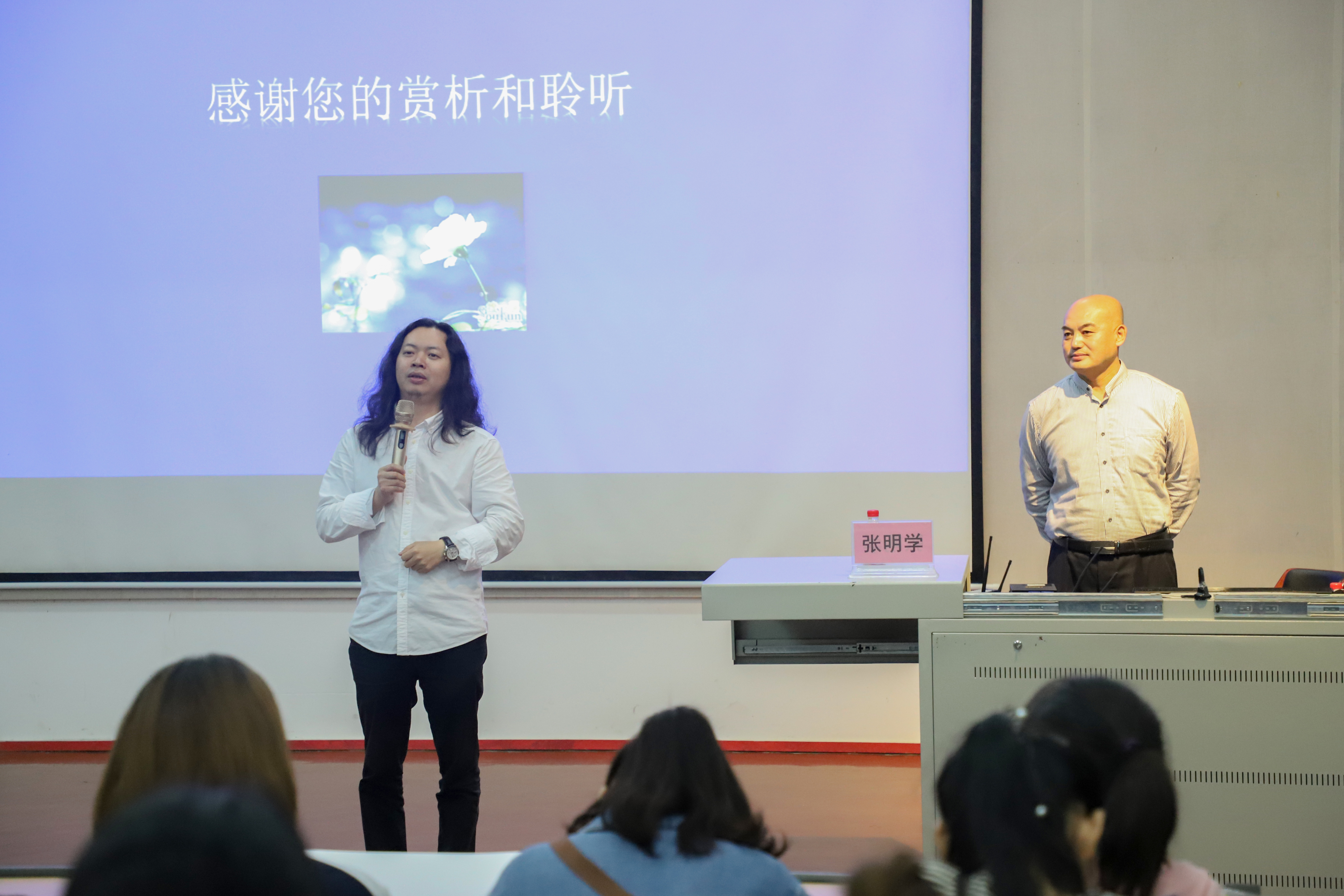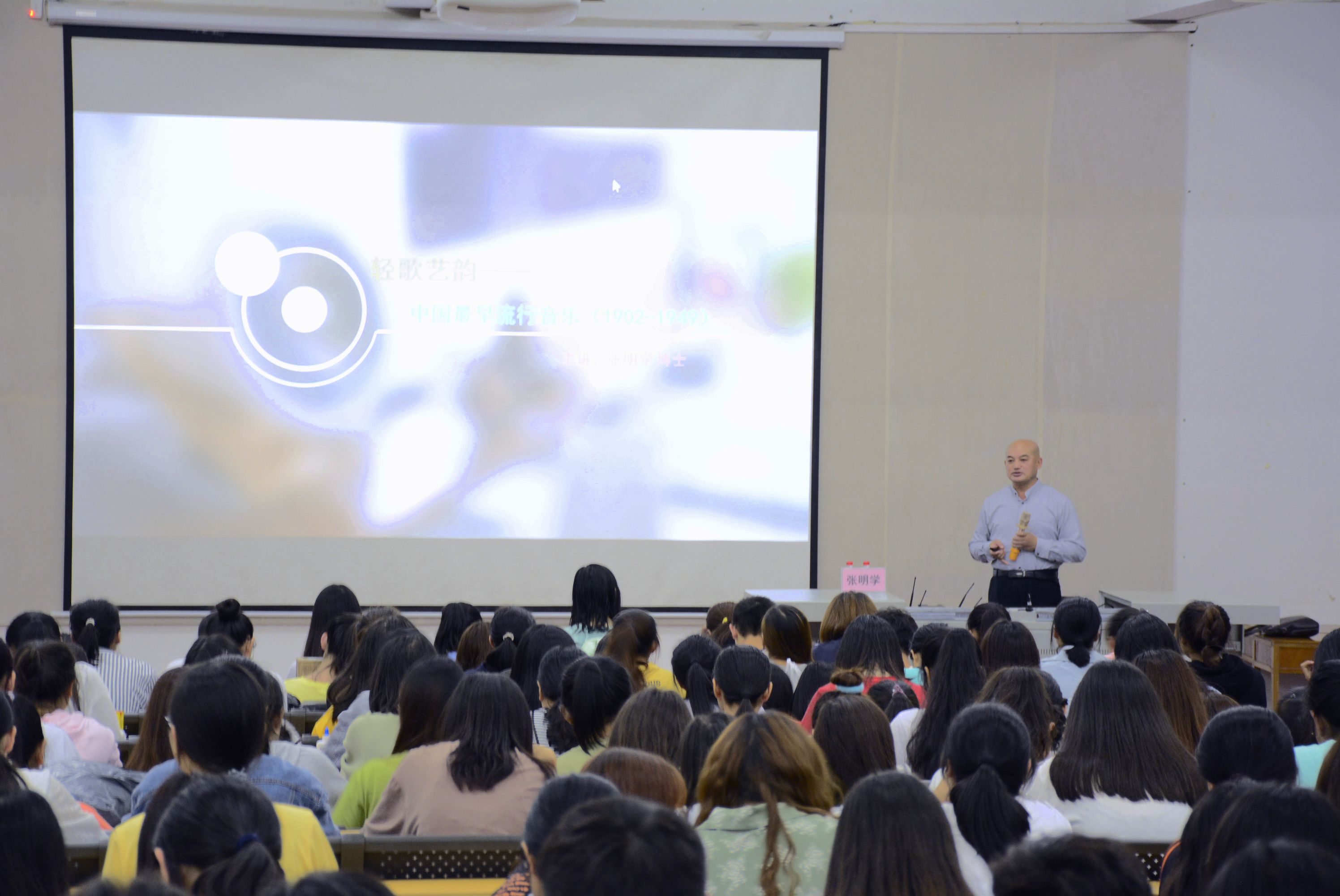 2019年11月17晚7:30在西校区伦理楼107,广西大学艺术学院张明学教授为我校师生带来了一场题为《轻歌意韵—— 中国最早流行音乐》的精彩讲座。本次讲座由我校副校长胡胜主持。