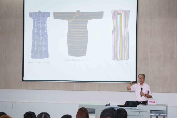 讲座中,李当岐教授从中国服饰文化的根基讲起,向我们深刻分析了中国当代时尚文化潜力,特别提到了关于前开式衣服开襟朝向的文化差异。同时,从不同时期不同地域的文化差别、不同的服装功能意识、不同的着装观念、不同的着装方式和不同的变迁过程等五个方面向我们详细对比了中西方服饰文化的区别。李教授说,从历史上看,中国服饰经历了五次变革,中国服饰文化具有极大的包容性、内涵丰富多样。