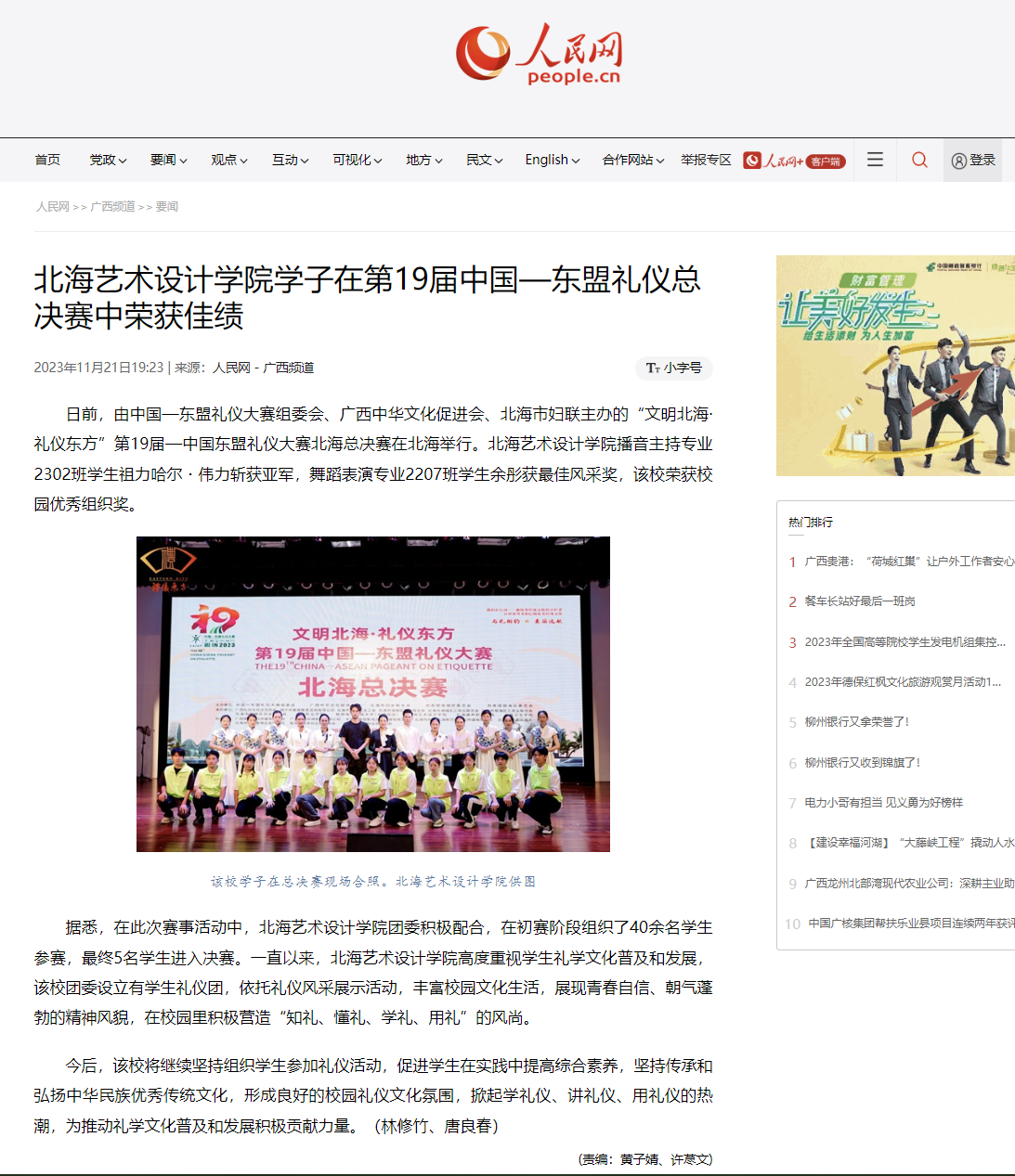 人民网:北海艺术设计学院学子在第19届中国—东盟礼仪总决赛中荣获佳绩