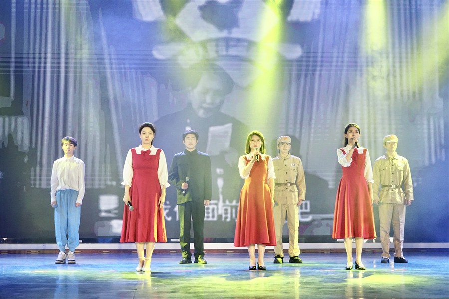 接着,学生们演出了一批红色主题节目:合唱《太行山上》、舞台剧《红绸》、舞蹈《风筝》《雨花石的等待》《离开雷锋的日子》《永不消逝的花》、朗诵《沁园春·长沙/沁园春·雪》《毛主席的光辉照万代》《为有牺牲多壮志》精彩上演,全场师生在享受艺术美的同时,潜移默化中接受了红色精神的洗礼。