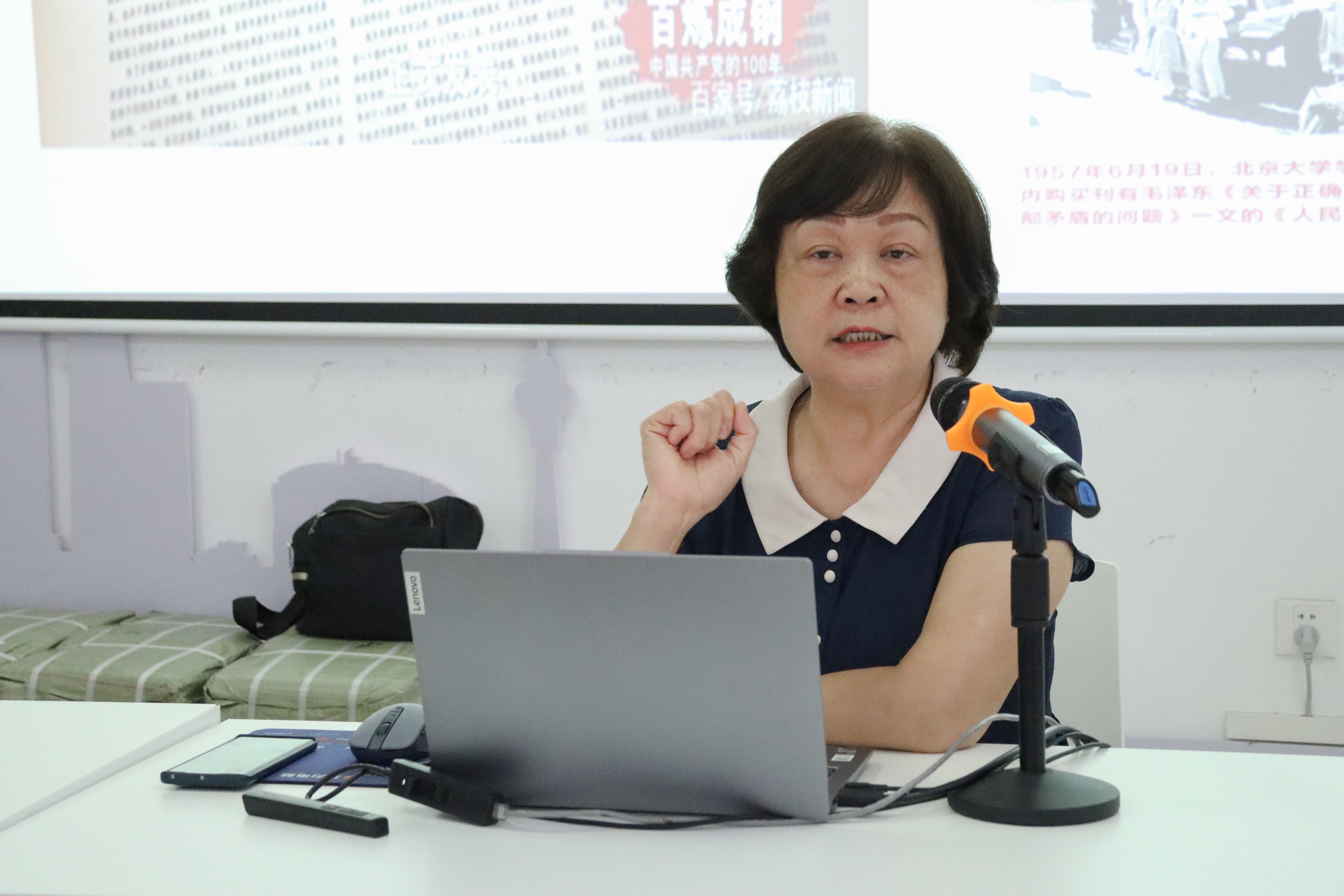 覃红教授以视频为导入,从《关于正确处理人民内部矛盾的问题》形成的时代背景、主要内容和现实指导意义等方面展开讲述,多角度、多维度地将该文章和教师的主课内容给巧妙地联系起来。她从苏共二十大、波兹南事件、匈牙利“十月事件”等国际背景过渡到国内背景,简明扼要地阐明了为何新中国要从“以苏为师”转变到“以苏为鉴”。在主要内容部分,覃红教授采取原文展示和思维导图交替的方式,围绕“社会主义社会是否有矛盾”“社会主义社会存在什么性质的矛盾”“如何区分和处理不同性质的矛盾”层层递进、深入浅出地点明了“正确认识和处理两类不同性质矛盾的方法”。同时,通过毛泽东和郭沫若的精彩对诗,生动地展示了当时正确处理社会主义社会不同性质矛盾的困难和决心。最后,她指出《关于正确处理人民内部矛盾的问题》一文,对于新时代中国特色社会主义现代化建设的今天,仍然具有非常重要的现实指导意义。