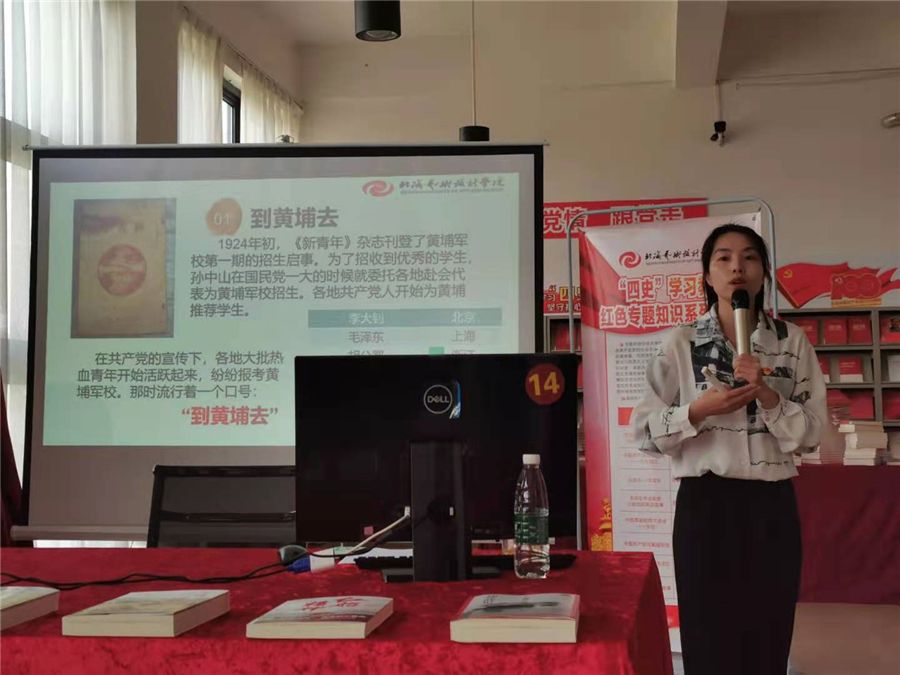 “四史”学习教育红色专题知识系列讲座是马克思主义学院与图书馆落实中央“四史”学习教育和党史学习教育要求,开展的主题鲜明、极具特色的活动,这次系列讲座的听众有来自各个二级学院的入党积极分子、预备党员、老师和图书馆的全体工作人员,受众师生数百人。