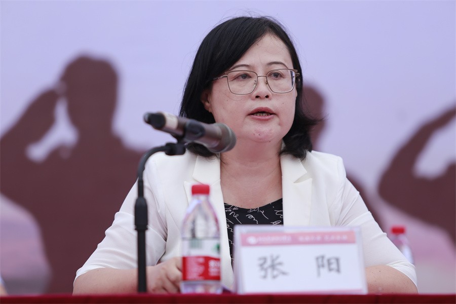 张阳表示,军训是大学生的必修课,是锻炼自我,挑战自我,超越自我的一次历练,是爱国主义情感的一次升华,同时也是为国防和军队建设培养造就大批高素质后备军的一项重要举措。她向全体参训同学提出要求:一是保持政治清醒,切实维护祖国的和平统一。要有高度的政治自觉和行动自觉,要树牢中华民族共同体意识。二要一切行动听指挥,要以高标准严要求来完成军训任务。要以军人的姿态来塑造自己,以军人的标准来要求自己,以军人的精神来激励自己,以最饱满的热情和最昂扬的斗志投身到军事训练当中去。三是秉承北艺优良传统,以军训为契机开启更加美好的大学生活。要以这次军训为起点,秉承 “道德”的校训精神,以高标准严要求在军训中不断增强志气、骨气、底气,将军队纪律、军队作风、军人意志等内容融入今后的学习、生活和工作,不断塑造个人品格、品行、品味,练好“内功”,积蓄青春正能量,自觉践行德、智、体、美、劳全面发展,让革命薪火代代相传。