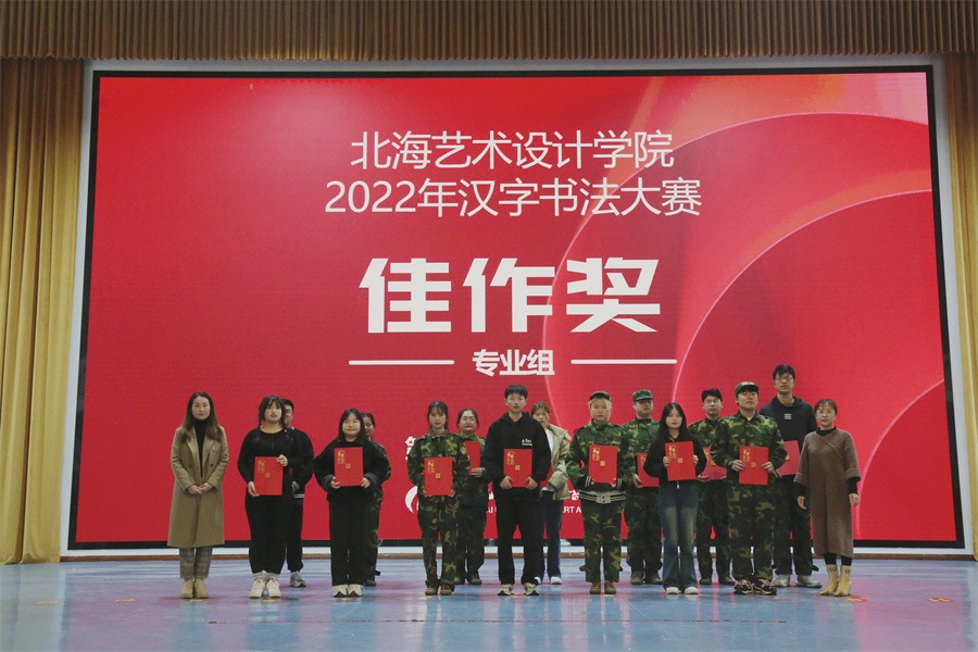 12月9日下午,我校2022年汉字书法大赛颁奖典礼在西校区大礼堂顺利举行。学校副校长胡胜、陶立阳出席典礼,设计艺术学院院长李林平、动画与传媒学院院长孙永辉、人文教育学院院长熊秀峰、美术学院院长龚为、马克思主义学院院长姜献生、通识教育学院院长杨莹、创新创业学院院长云曼、建筑与环境艺术学院副院长王文刚、教务处处长武鹏程、宣传部部长文春明参加典礼。