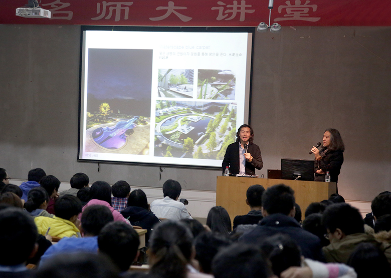 12月26日晚,韩国江陵大学校环境造景学科赵泰东教授莅临我院名师大讲堂,为我院师生带来一场主题为“都市环境 建筑发展的探究”的精彩讲座。讲座全程使用日语讲授,由清华大学美术学院刘北光教授担任现场翻译。