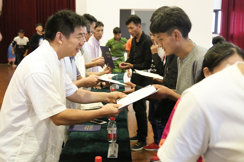 随后,出席颁奖典礼的学院领导为西藏班五十名学生颁发了结业证书,祝贺他们圆满完成在北艺的课程学习。最后,现场全体师生共同欣赏了别具特色汉藏歌舞节目,精彩的表演博得了现场师生的热烈掌声。
