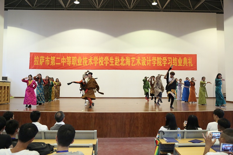 随后,西藏学生代表拉巴卓玛发言。她代表全体西藏班同学感谢北艺为西藏同学提供了良好的学习机会,感谢老师们的精心呵护和悉心指导,让他们领略到了旖旎风光,也学习到了新知识和新技能,他们将带着满满的收获回到西藏继续学习,将来为建设家乡添砖加瓦。