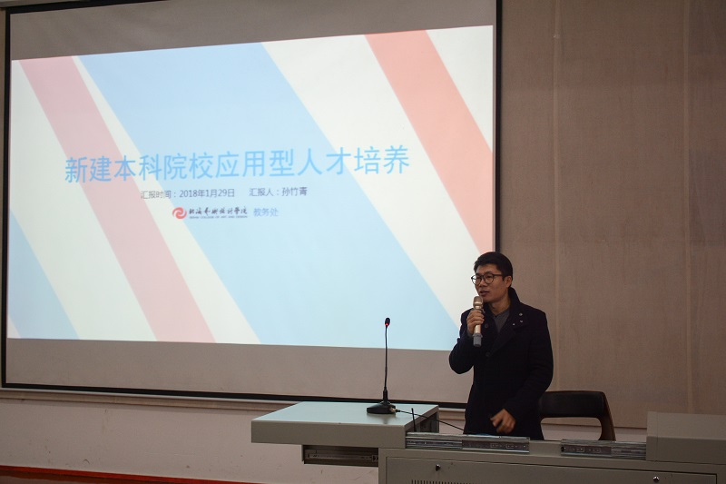 随后,教务处处长孙竹青作《新建本科院校应用型人才培养》报告。孙处长就服务地方、应用型人才、校企合作、师资队伍、实践型教学、应用型技术研究六个方面对我校如何培养应用型人才进行了详细讲解。