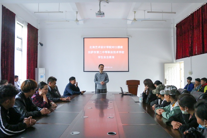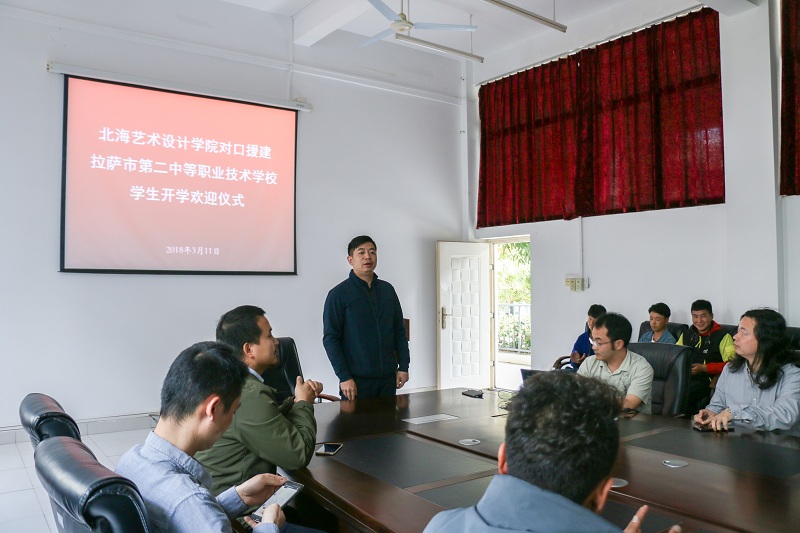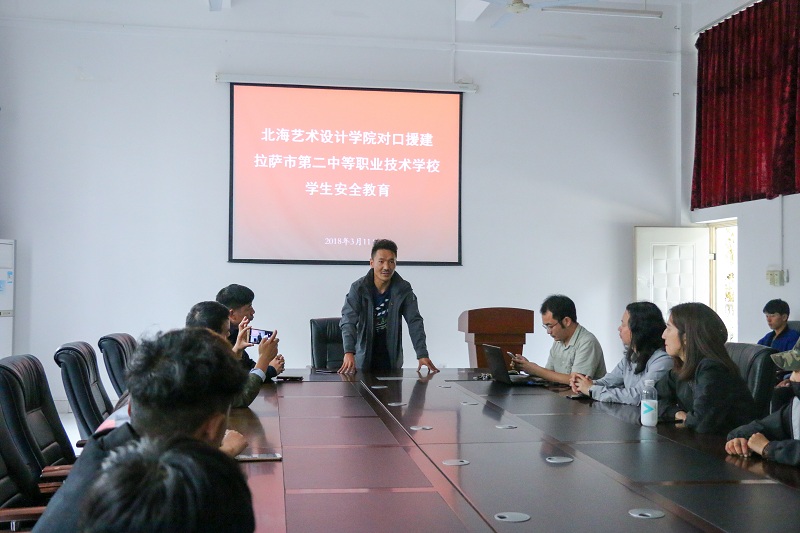 2018年3月11日下午,我校对口援建拉萨市第二中等职业技术学校学生开学欢迎仪式暨学生安全教育会,在东校区综合楼会议室召开。我校副校长胡胜、副校长兼党委副书记彭仁、学工处处长刘承初、设计学院常务副院长李林平、设计学院副院长廖汀、实验实训中心主任李德贤、西藏班带队老师边巴塔杰等出席了本次活动。