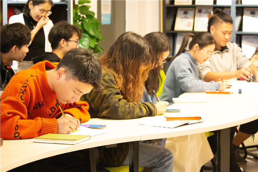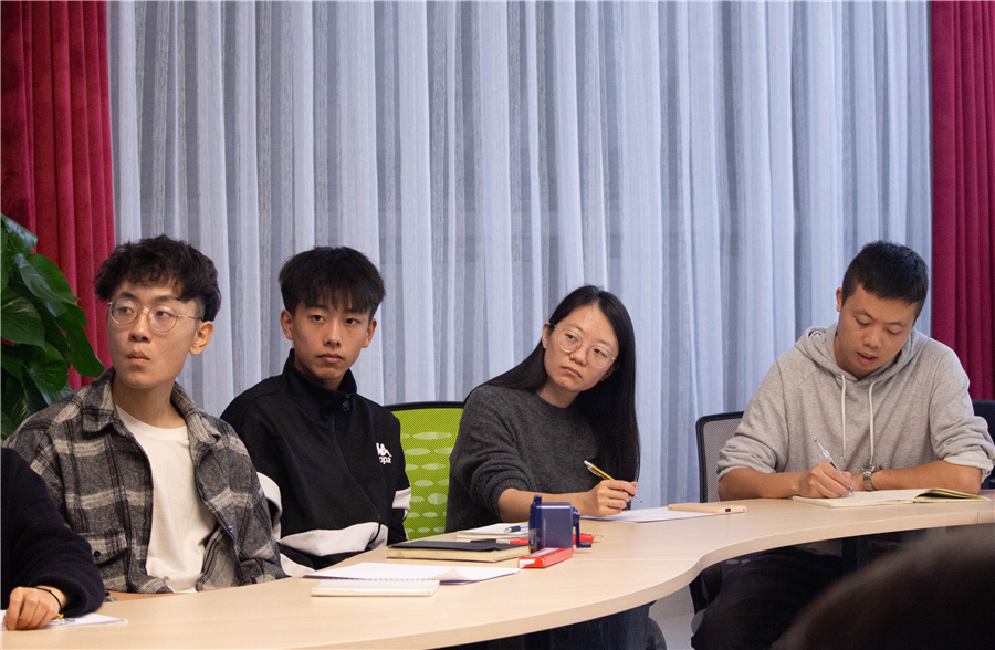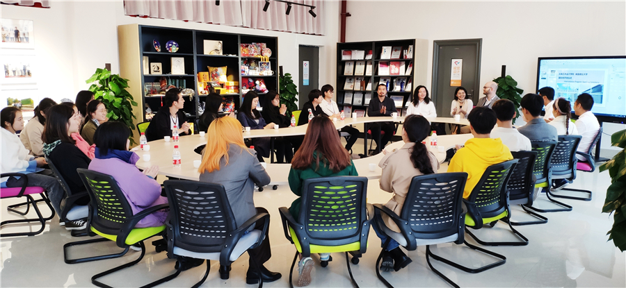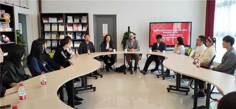 随后,Matt Hawthorn 副院长与设计学院师生就两校在开展专业教学及双方深入合作方面进行了深入的交流,并就同学们关心的国际班学习以及未来英国留学相关问题展开了热烈的讨论。今年暑期参加过德比大学夏令营的陈沁同学用亲身体会谈到了在英国学习的过程。开班仪式在热烈而轻松的气氛中结束了。