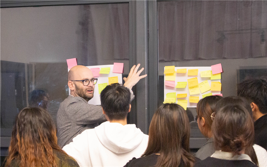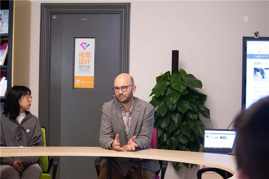 在视频结束后,德比大学艺术学院副院长Matt Hawthorn教授为现场师生开展了以城市公共服务“Service Design”为主题进的项目分析与互动。同学们对“Service Design”专题分享兴趣浓厚,现场氛围热烈,用头脑风暴法提出了很多相关的设计问题和思路,之后进行分类和逐一分析,找出解决方案,形成了最终的讨论成果。