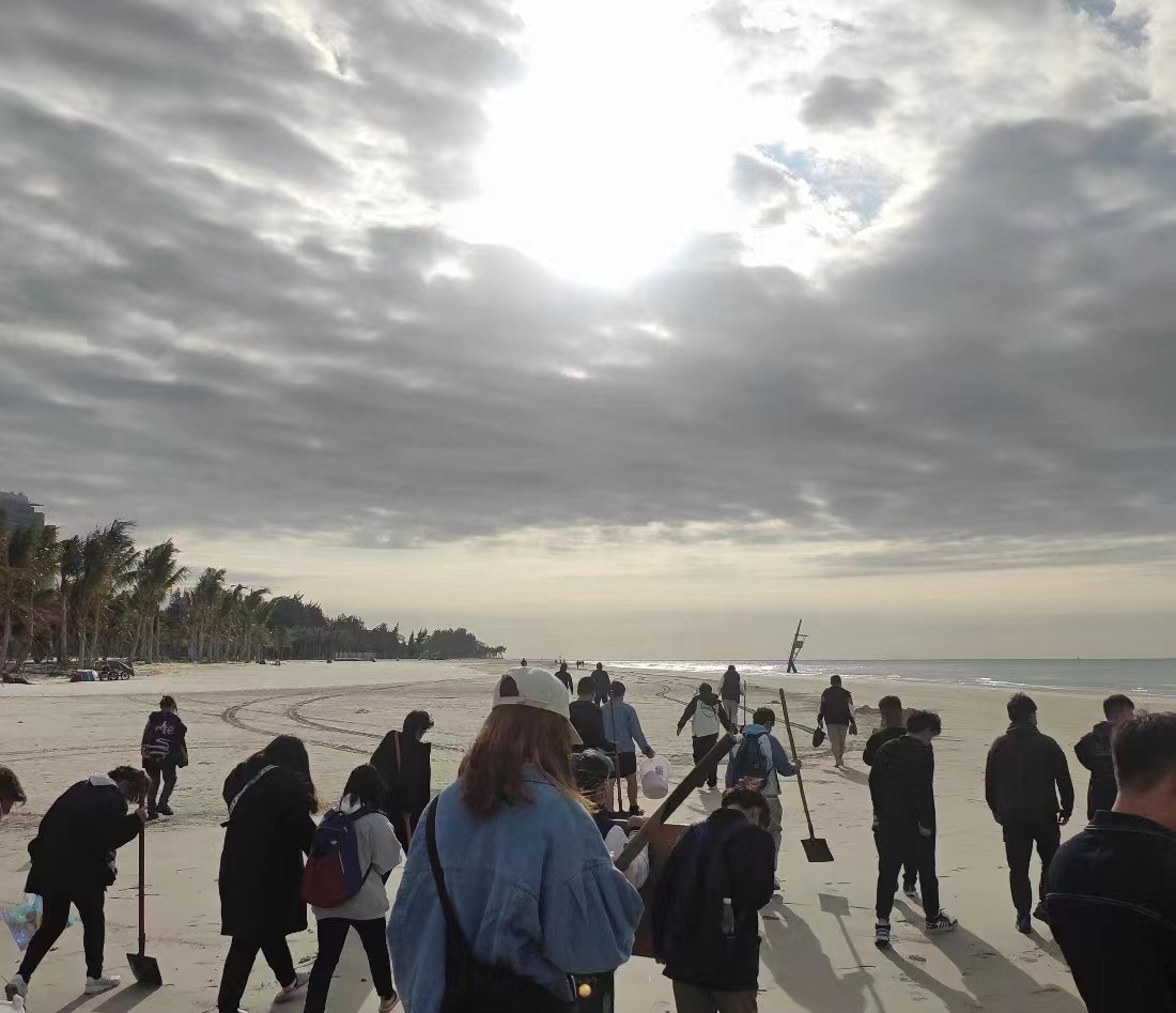 为切实落实思想教育与专业知识的有机结合,加大实践教学的力度,带学生走出课堂,增加课程的可能性,丰富教学的趣味性,为助力北海市地标性景区做好宣传服务,2021年11月8日上午,北海艺术设计学院美术学院雕塑系专业组织全体师生,前往素有“天下第一滩”之称的北海银滩举报沙雕主题创作实践教学活动。