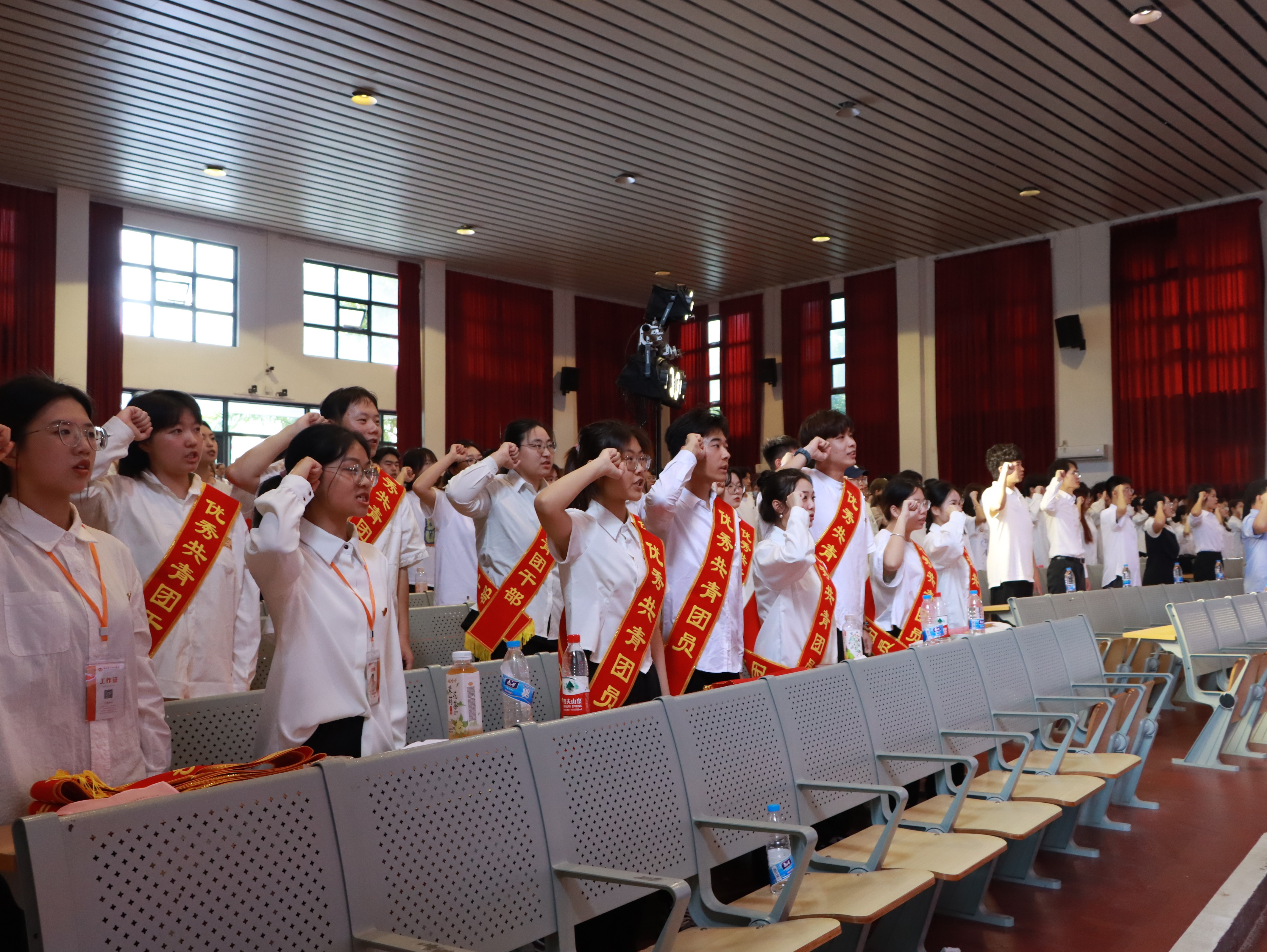 在团委书记唐良春同志的坚定引领下,新老团员们整齐肃立,庄严宣誓。礼堂内,誓言如金石般回荡,它不仅仅是一纸简单的誓词,更是我们心中对青春理想的坚守,对未来使命的担当,是我们矢志不渝、砥砺奋进、共筑梦想的庄重承诺。