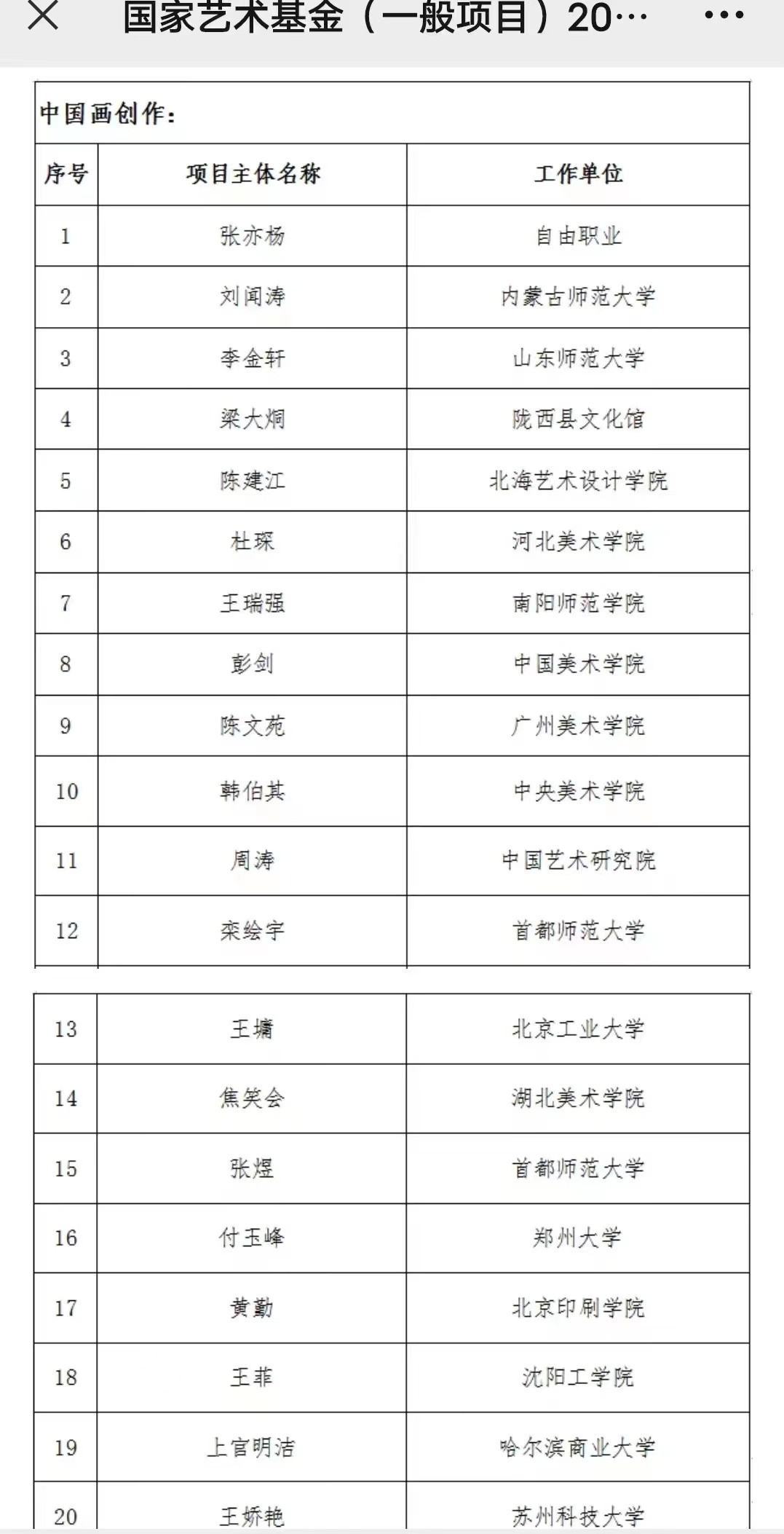 近日,国家艺术基金管理中心公布了《国家艺术基金(一般项目)2023年度资助项目名单》,我校美术学院陈建江老师喜获一项,值得庆贺。