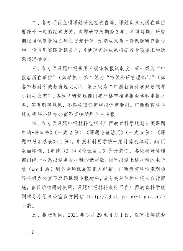 广西教育科学规划领导小组关于组织开展广西教育科学规划2021年度“乡村教师能力素质提升“等七个专项课题申报工作的通知