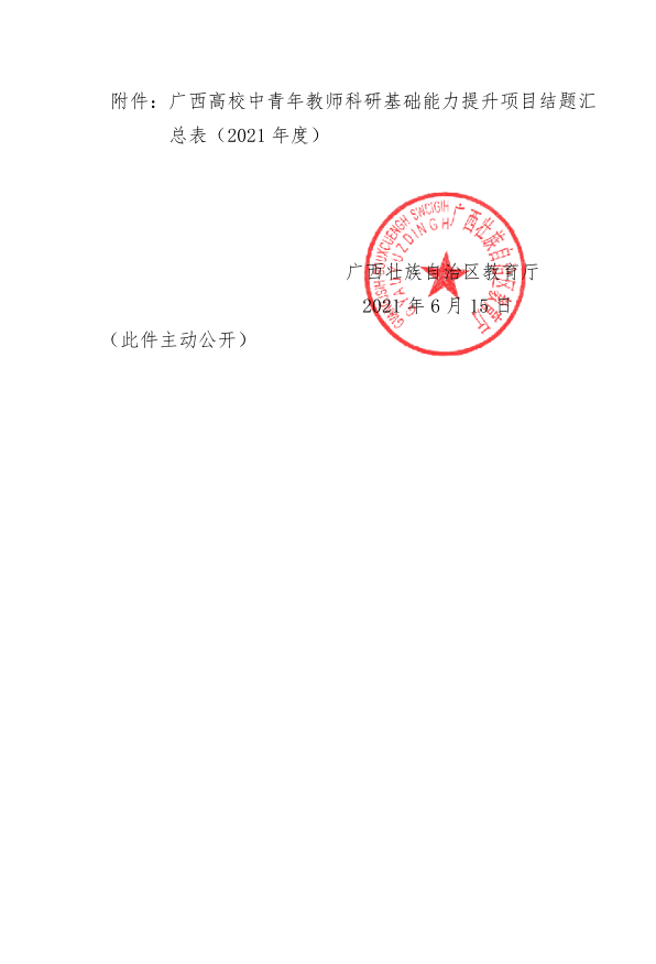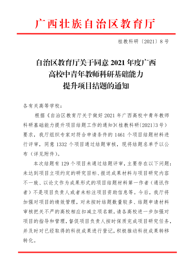 自治区教育厅关于同意2021年度广西高校中青年教师科研基础能力提升项目结题的通知