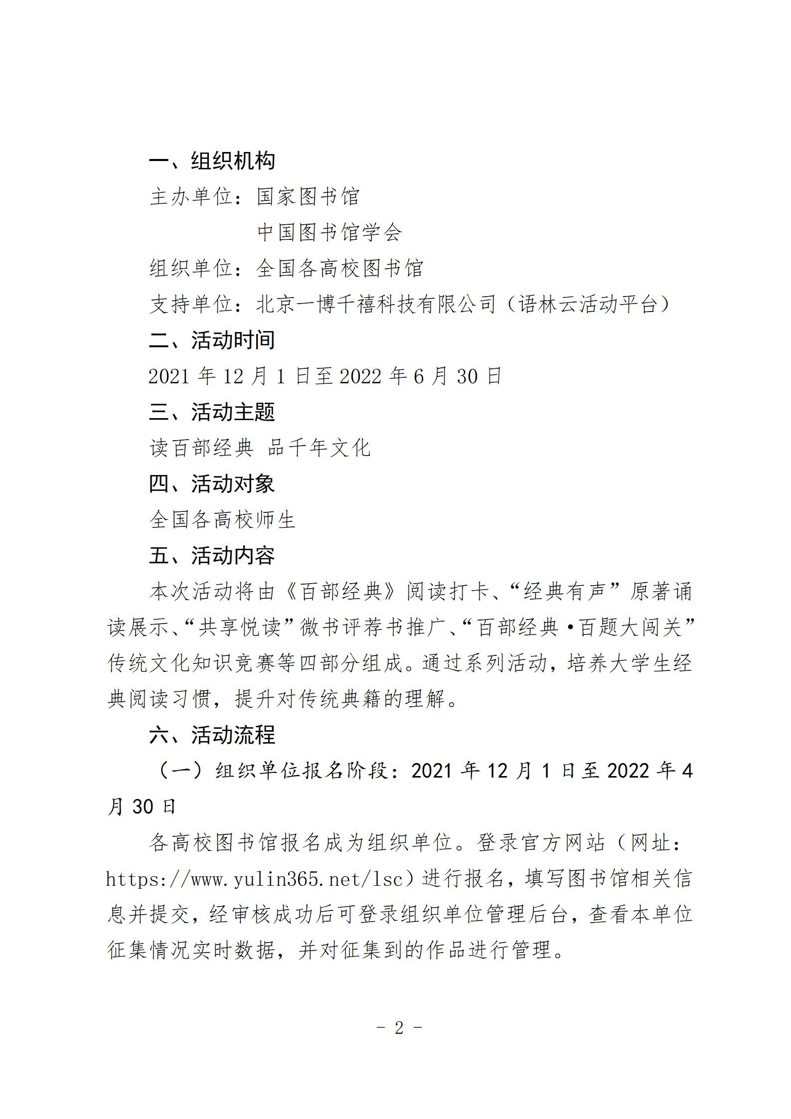 关于举办“读百部经典 品千年文化”——《中华传统文化百部经典》校园行活动的通知