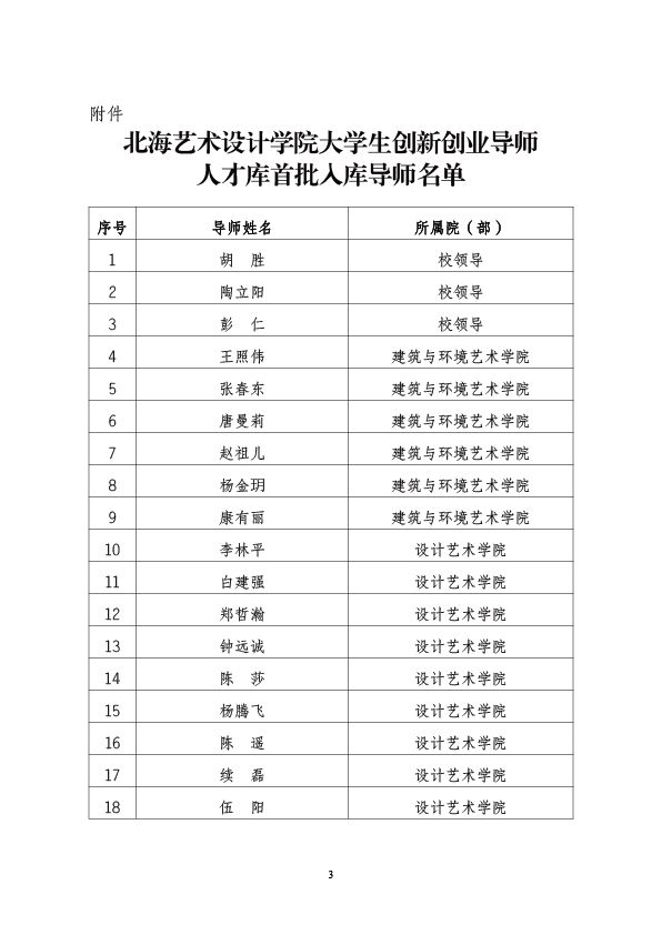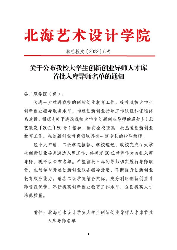 北艺教发〔2022〕6号关于公布我校大学生创新创业导师人才库首批入库导师名单的通知
