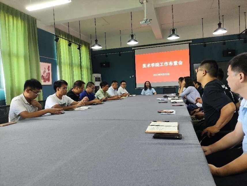 925日,美术学院召开2023年度工作布置会议,美术学院分管校领导胡胜校长莅临指导工作,美术学院院长龚为、副院长肖玺、副院长金凯婧及各部门领导参加会议。胡胜校长在会上结合美术学院现状做出新的工作指示,并对美术学院未来发展表示期待。