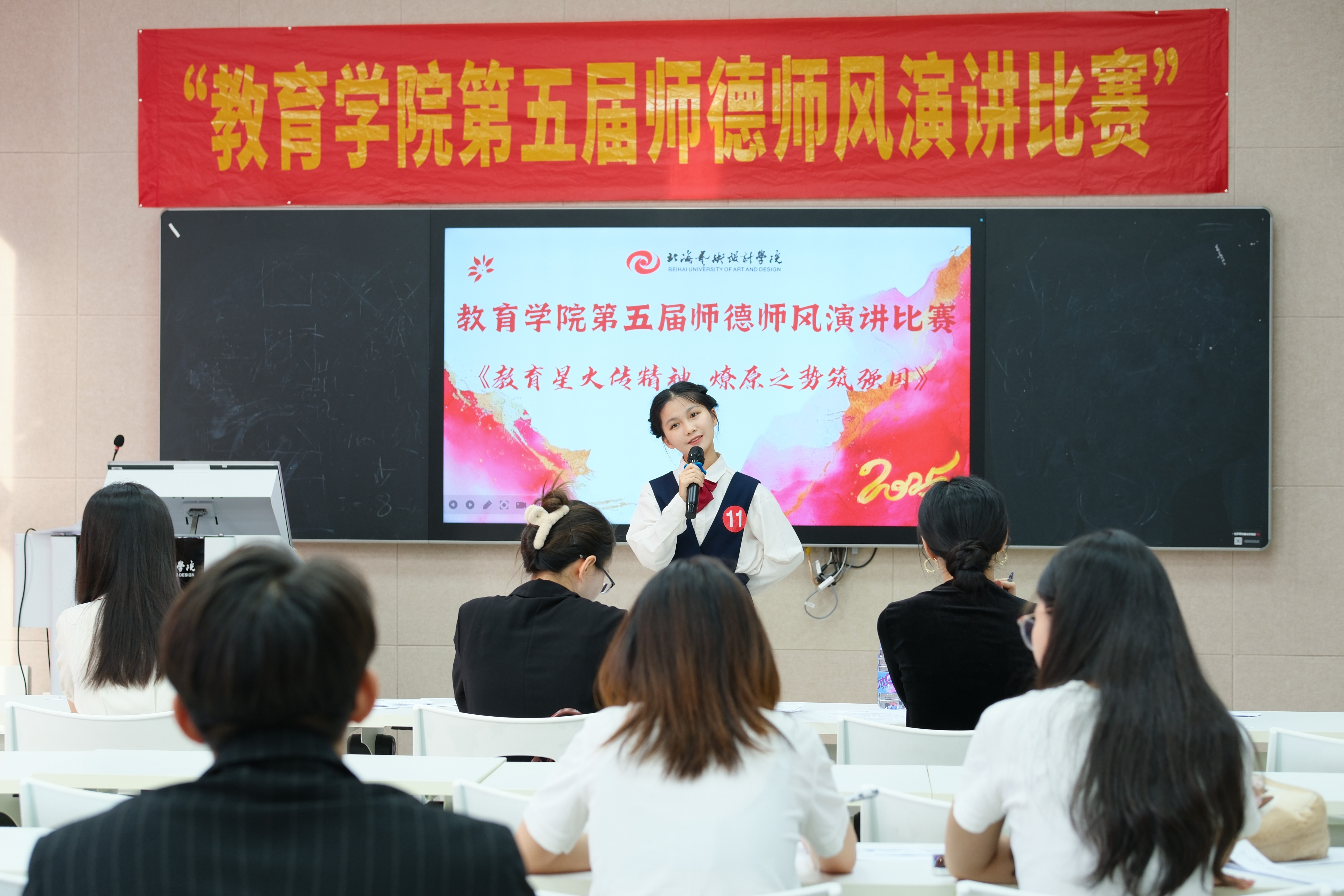 此次比赛不仅是一次师德风采的集中展示,更是一场精神力量的传递与共鸣,激励着教育学院全院师生将教育家精神融入日常教学与学习中,以实际行动为教育强国建设添砖加瓦,同时为学院师德师风建设注入了更富活力的时代动能。