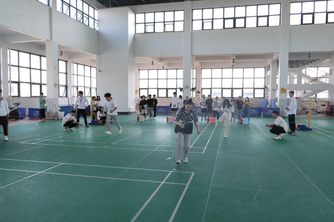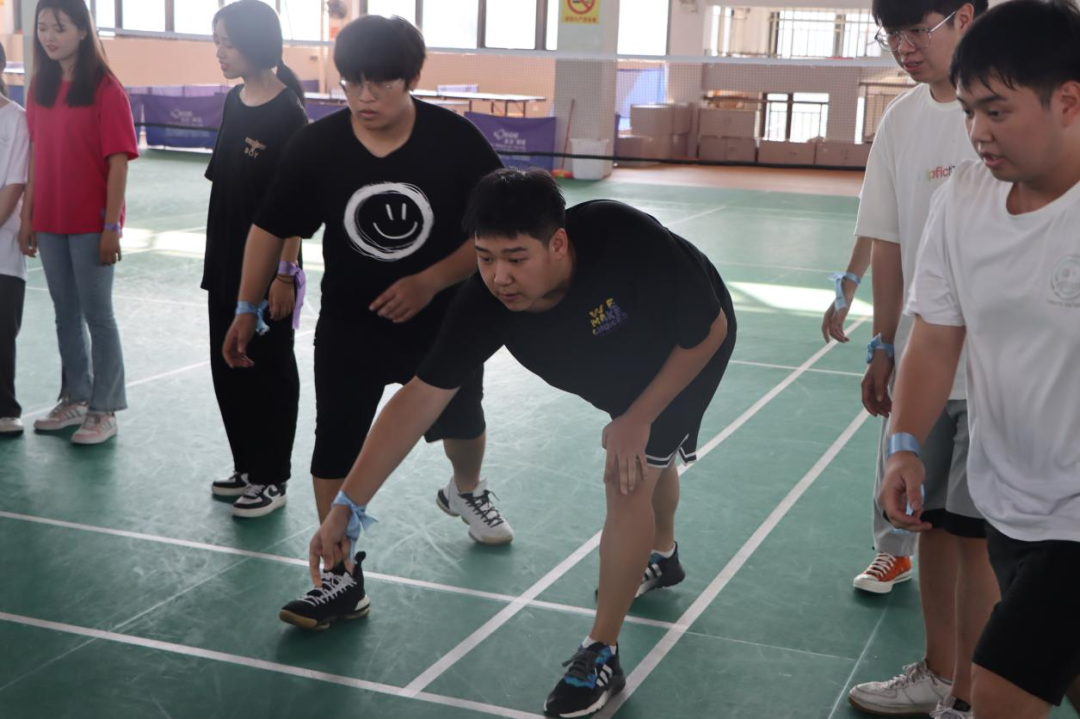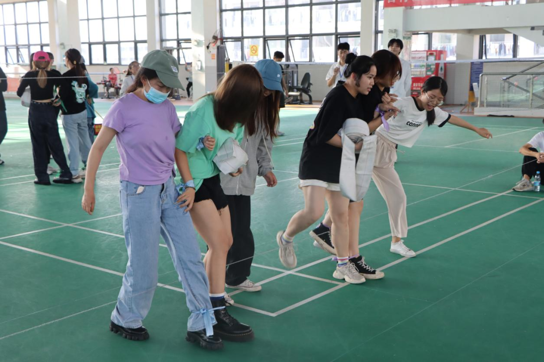 每队的两人将腿绑在一起,一人拿灭火器,一人拿消防水带,两人配合走到终点回答问题,答对后回到起点交给队友交接。最后游戏结束,由工作人员统计各队得分,再交给主持人进行评比,在此感谢各位工作人员和同学们的支持与配合,保证了此次活动的顺利举行。