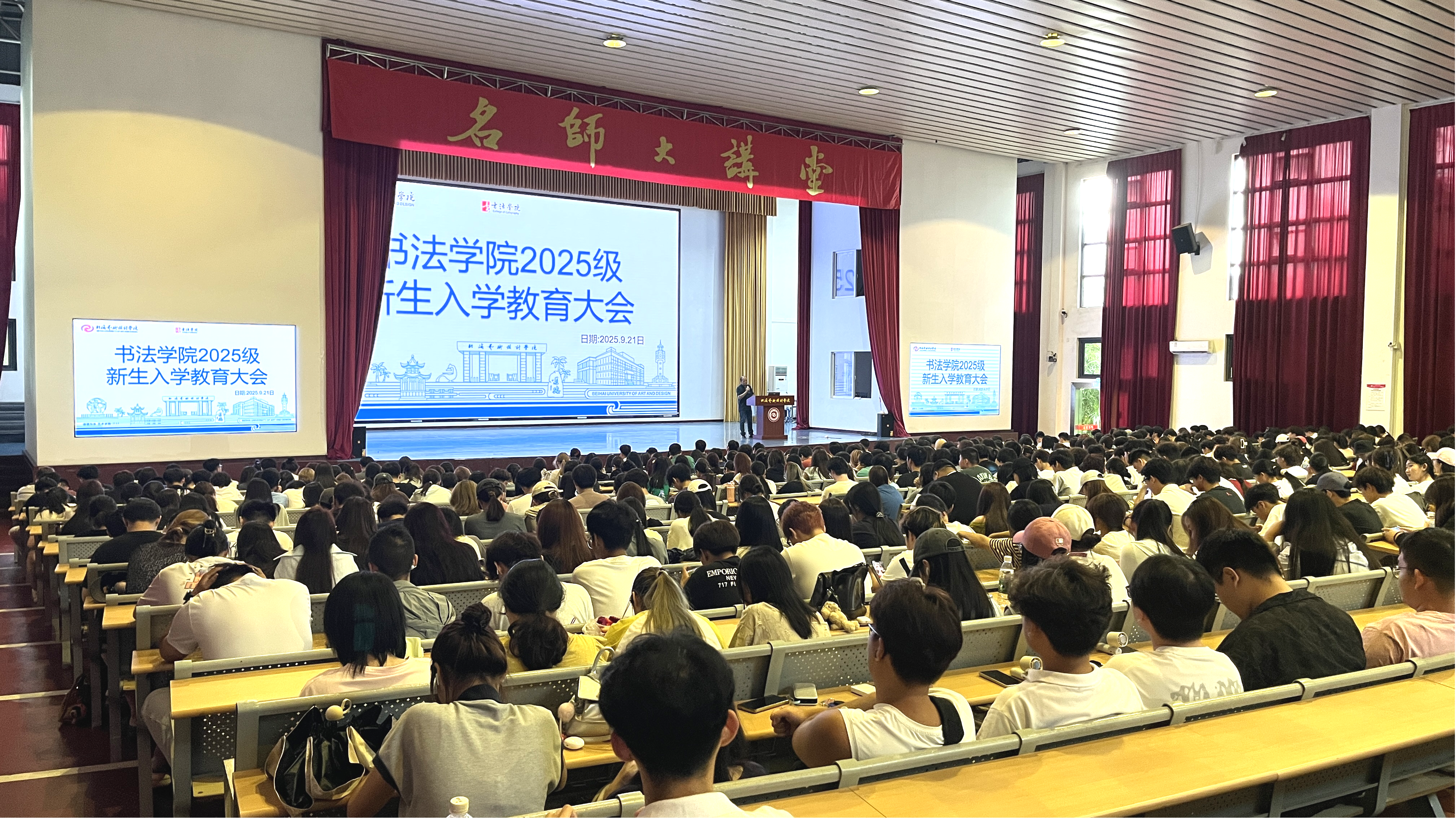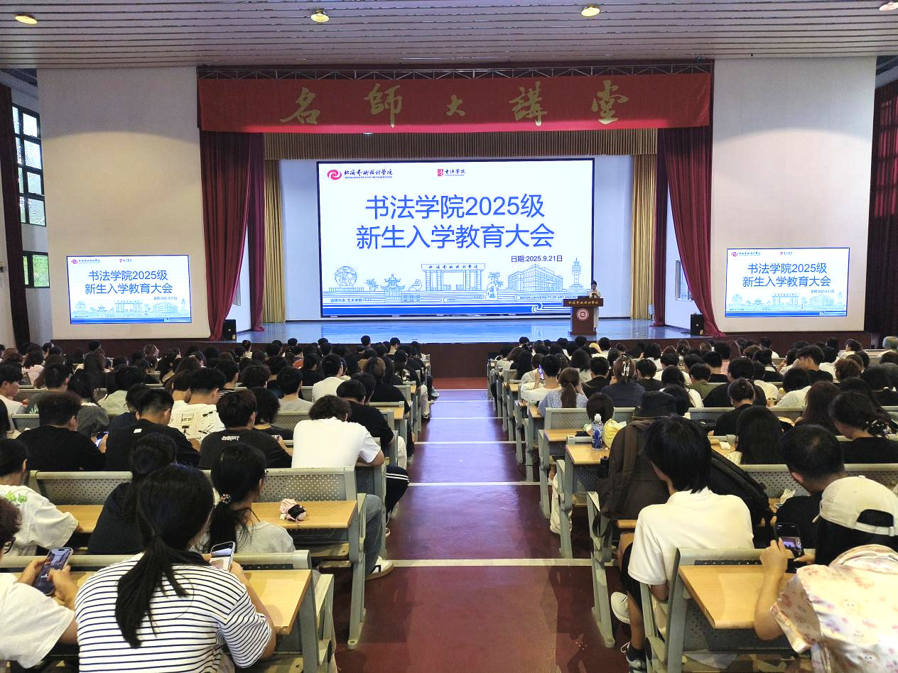为引导新生适应大学环境、确立学业规划并强化安全意识,9月21日,书法学院于西校区大礼堂组织开展2025级新生入学教育大会。学院领导、全体教师及2025级全体新生参加会议。大会围绕专业前景、安全意识、规章制度、理想信念、学业导航等多个模块展开,帮助新生完成心理转型与角色转换,快速融入校园生活。