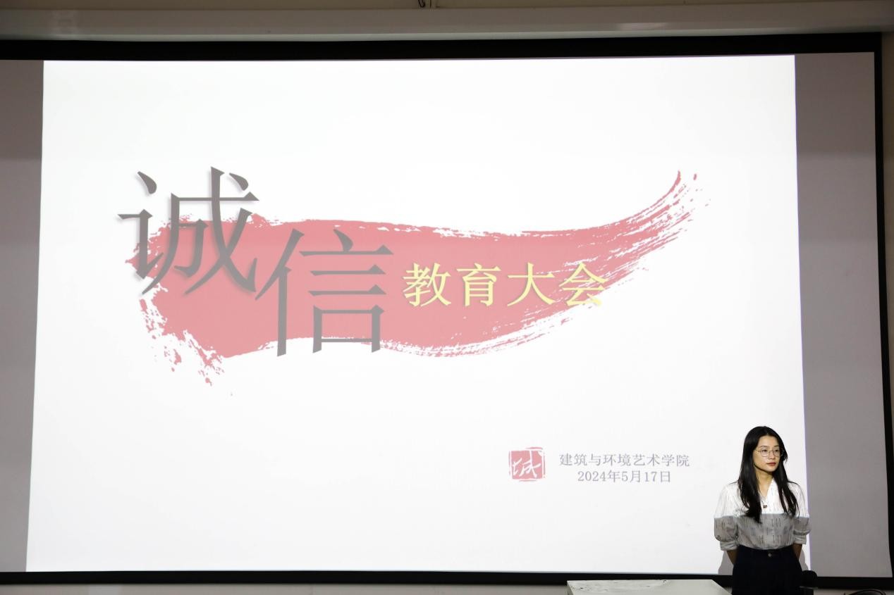 随着近些年国家资助政策力度的加大,越来越多的贫困学子因政策受益走进了梦想的学习殿堂。为了将资助政策宣传落到实处,让受资助的学生有诚信、懂感恩,建筑与环境艺术学院于2024年5月17日中午,在G-107召开“2024年建筑与环境艺术学院诚信大会”。