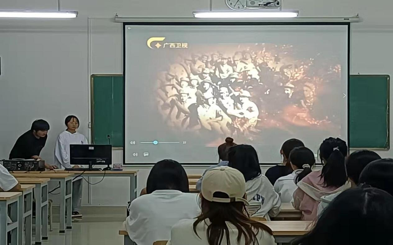 本次活动中,首先介绍了活动流程,让同学们跟紧步伐,随后又向同学们介绍了纪录片《红色传奇》的背景及内容。听完两位英雄的故事1班2班同学分别进行了交流与体会。