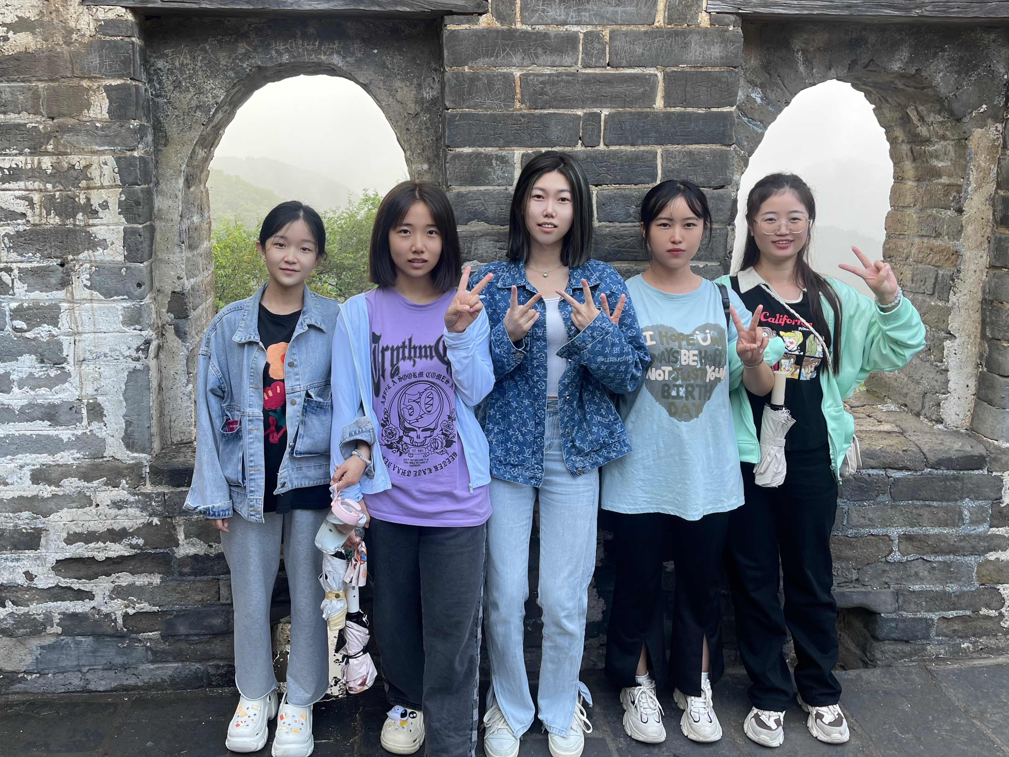 马克思主义学院院长姜献生教授及韦邕青老师在长城上进行思政教育。