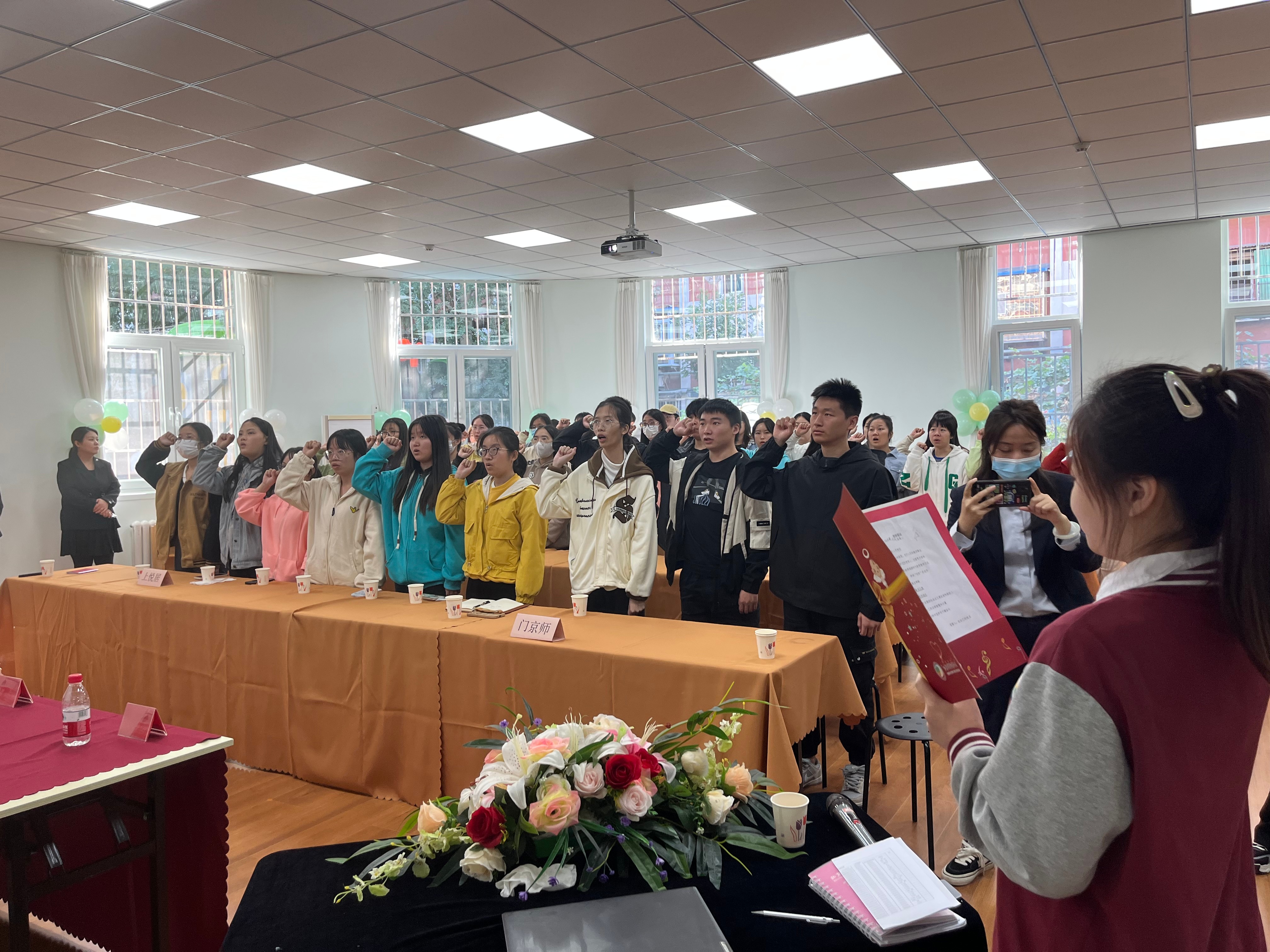 大会最后由京师德培教育集团朝阳区幸福天使幼儿园教师代表孙灿(北海艺术设计学院人文教育学院学前教育专业2022届毕业生)与2020级学前教育专业学生一同宣读入职誓词。