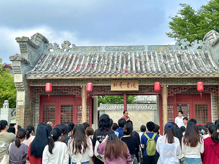 本次揭牌仪式结束后,北艺书院师生参观游览北艺书院,在精巧别致、古色古香的园林建筑里,赏花草树木,观鱼虫嬉闹,浸书墨之香,品文化气息。(陈真考/摄)