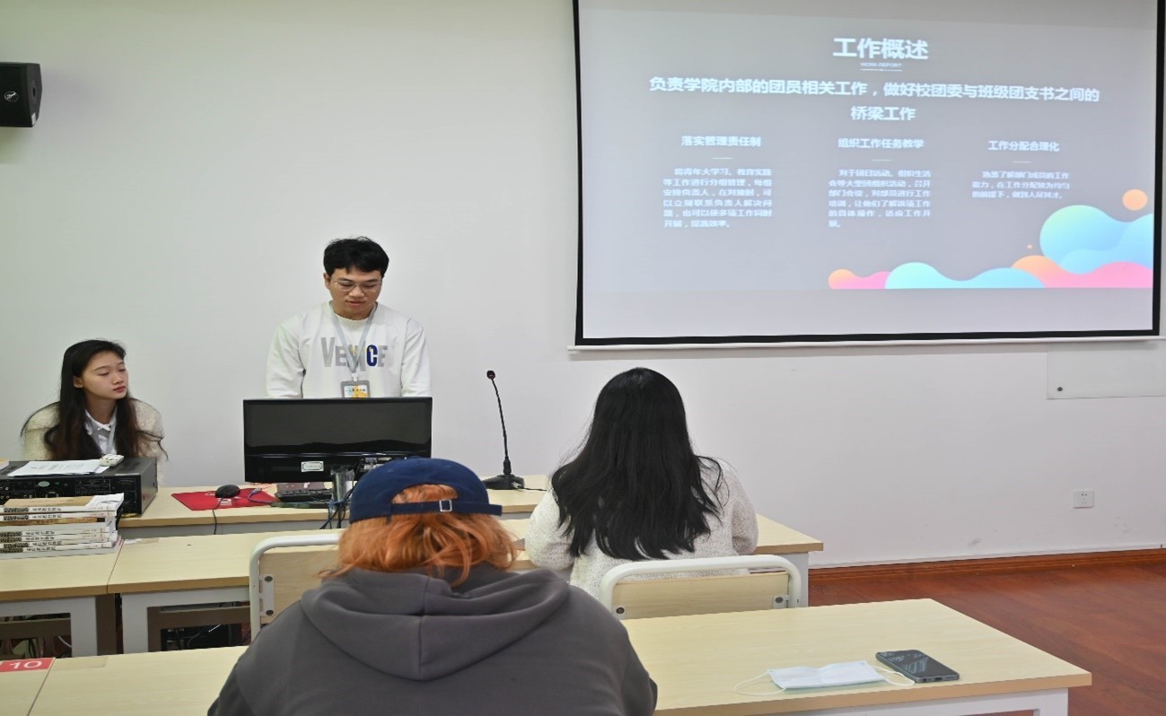 会议第二项,由分团委组织部、办公室、宣传部、学术部、礼仪部、纪检部、学生会组织部、合唱团部长依次上台发言。各部长对本学期工作进行总结,对下学期工作做出规划。他们表示,将加强部门间沟通协作,让部门内部以及部门之间工作更加协调。