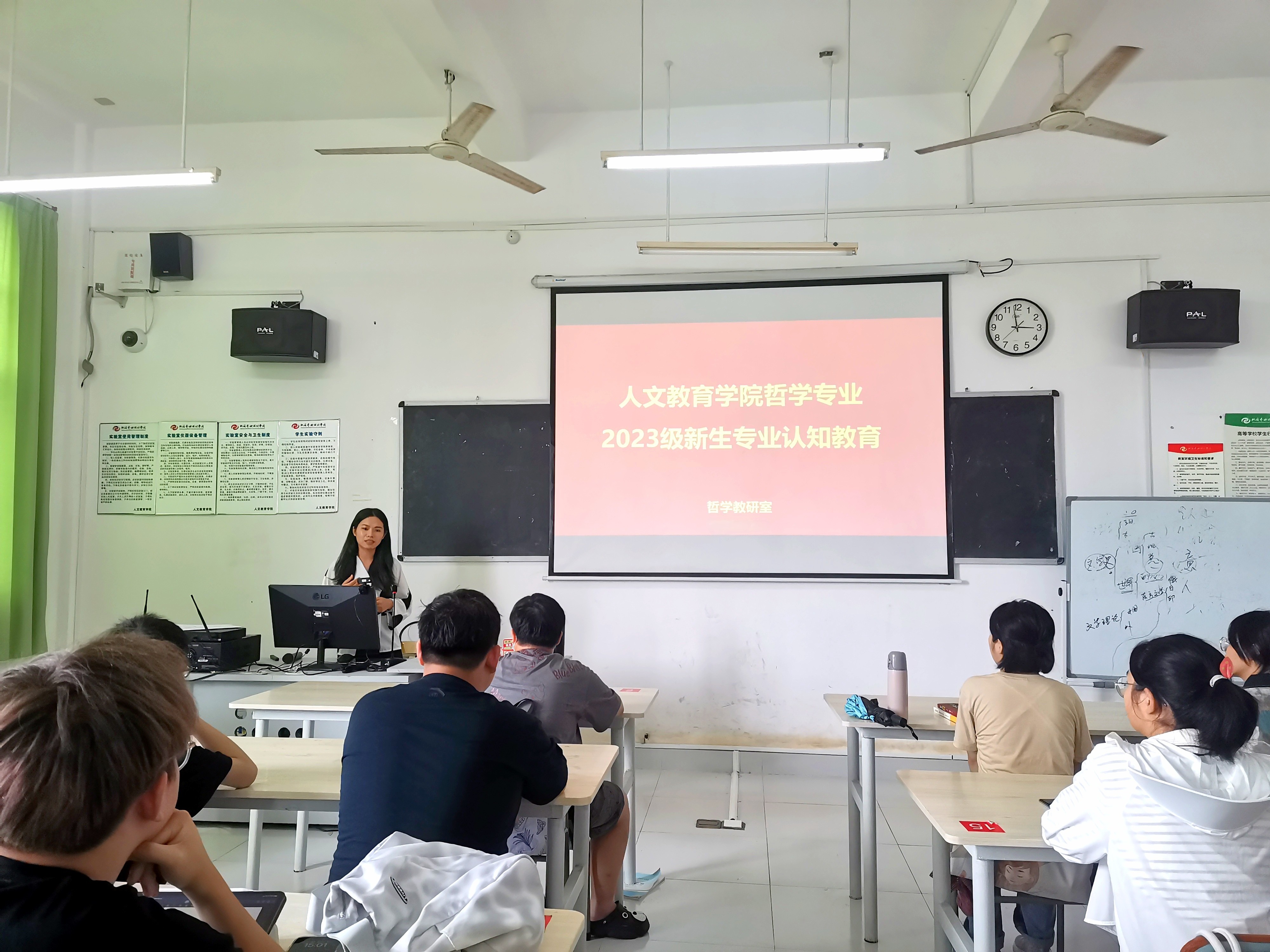 增进我院2023级新生对学院专业建构了解加强学生对本专业学习目标的理解,帮助新生们系好大学学习的第一颗“纽扣”9月11日至14日,我院汉语国际教育、汉语言文学、哲学等专业分别为2023级新生召开专业介绍会。部分教师及全体新生参与了本专业介绍会。