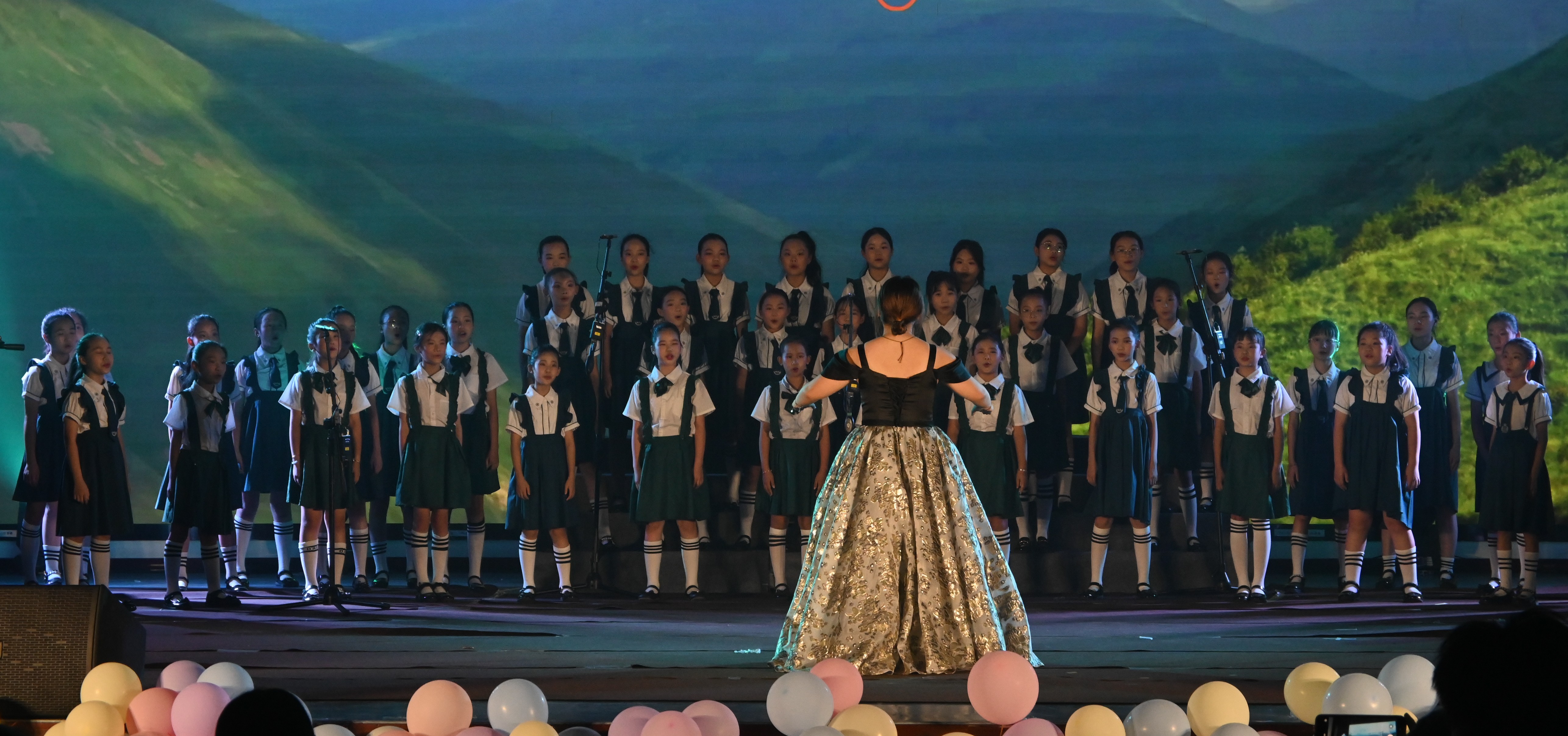 第四篇章:合唱与指挥。合唱指挥课程是艺术教育三年级专业必修课,通过结合在北艺附小的教育见习环节,让学生在实践中加深了对大型音乐作品的综合理解和技能的掌握。当晚与北艺附校艺乐童声合唱团联合出演三首作品《萱草花》、《悬崖上的波妞》《上春山》,既有童趣的展现,也有将合唱与民族音乐元素和古诗词的意境融合的民族弦乐合奏创新之作,切实地把学习成果转化为生动实践。