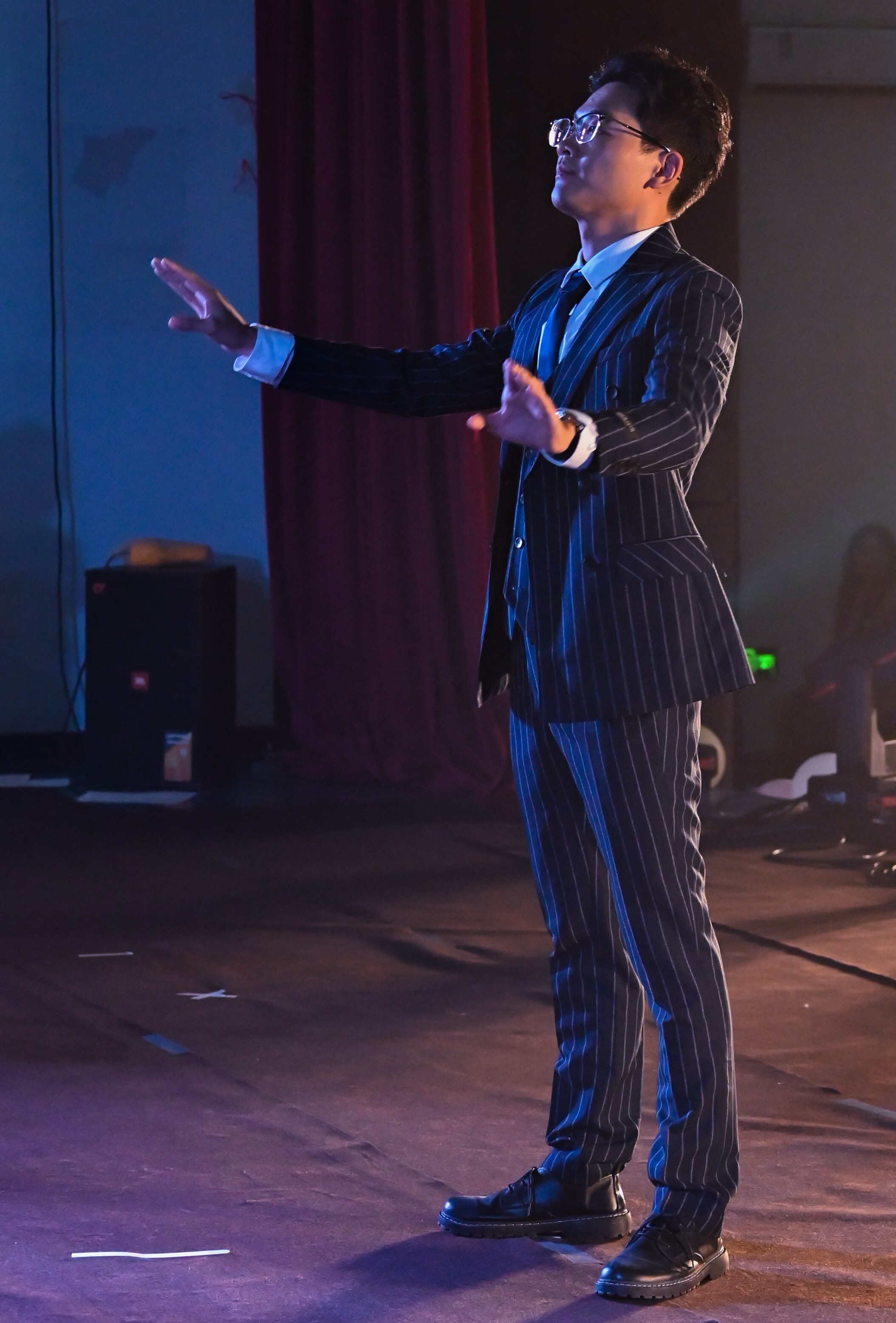 第二篇章:声乐作品。杨金源同学和石文君老师共同演绎流行歌曲《让我留在你身边》;李梦露、刘鑫宇同学演绎的歌曲《灿若星辰的目光》;付明博、王乐乐同学演唱歌曲《迟到的正义》;杨金源同学、卢尚蕊老师演唱的歌曲《心脏》,四首作品是艺术教育专业在声乐基础、声乐训练、教学歌曲演唱等课程中积累的丰硕成果的体现,扎实的唱功,动人的旋律,使在场观众沉浸其中。