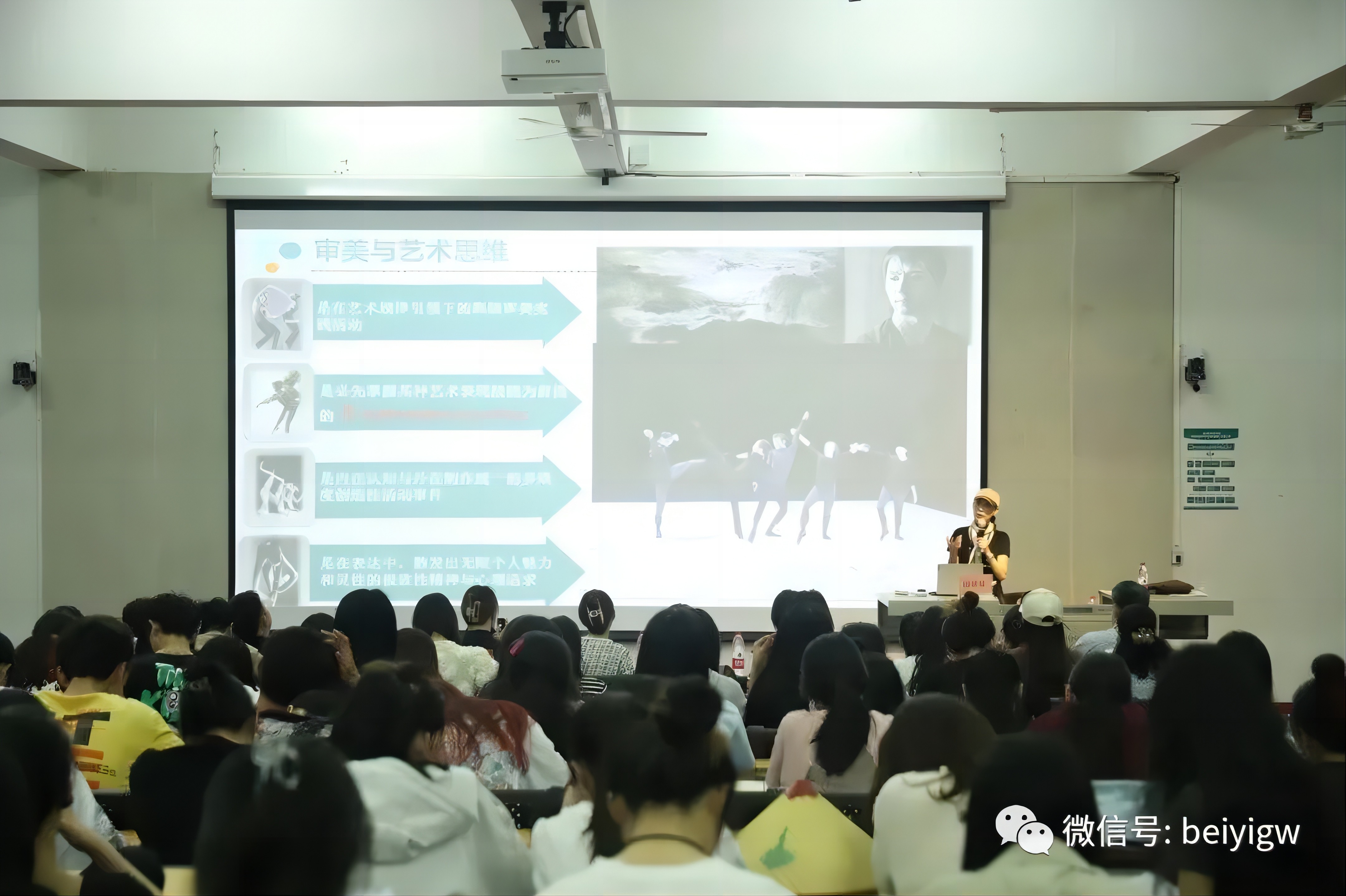 田教授播放了各种内容的专业舞蹈视频,带领师生领略肢体艺术的美,深刻阐述舞蹈艺术是用心里的眼睛观视一切,组构出多维立体的艺术表达设想。她强调,舞蹈艺术创作是以人体为核心材料,基于镜框式舞台空间,表现出独特的综合艺术表达视像。