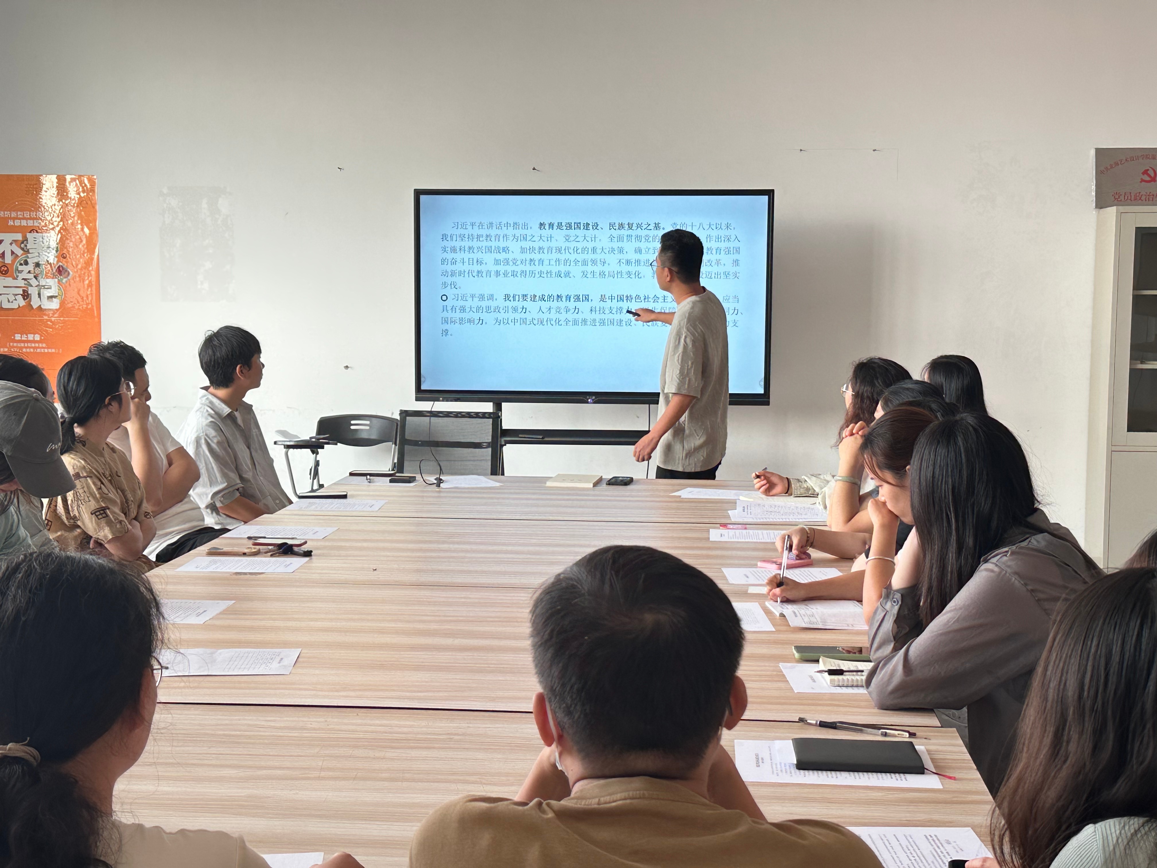 曹永攀强调,学院教职工在集中学习过后应认真学习领会文件精神,深入贯彻落实,务实功,出实招,求实效,奋力谱写教育强国建设新篇章。并提出具体要求:一要提高政治站位,切实把思想和行动统一到全国教育大会精神上来;二要强化使命担当,坚决贯彻落实党中央关于建设教育强国的重大决策部署;三要加强组织实施,确保全国教育大会精神落地见效。全体教职工鼓掌表示赞同,会议圆满结束。(吴柔洁/摄)